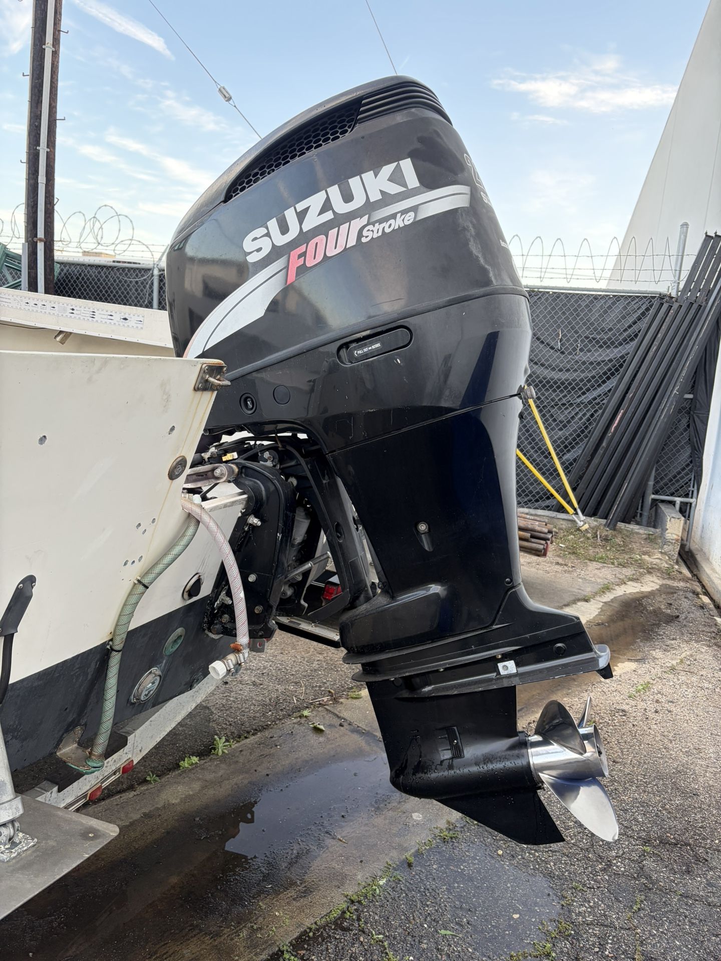 I have a good condition well maintained 2003 Suzuki 250HP four stroke outboard with a 25 inch shaft and stainless steel Prop, motor was recently serviced prior to putting the boat away last year. Motor is still mounted on the boat can see it run anytime Motor has roughly 815 hours