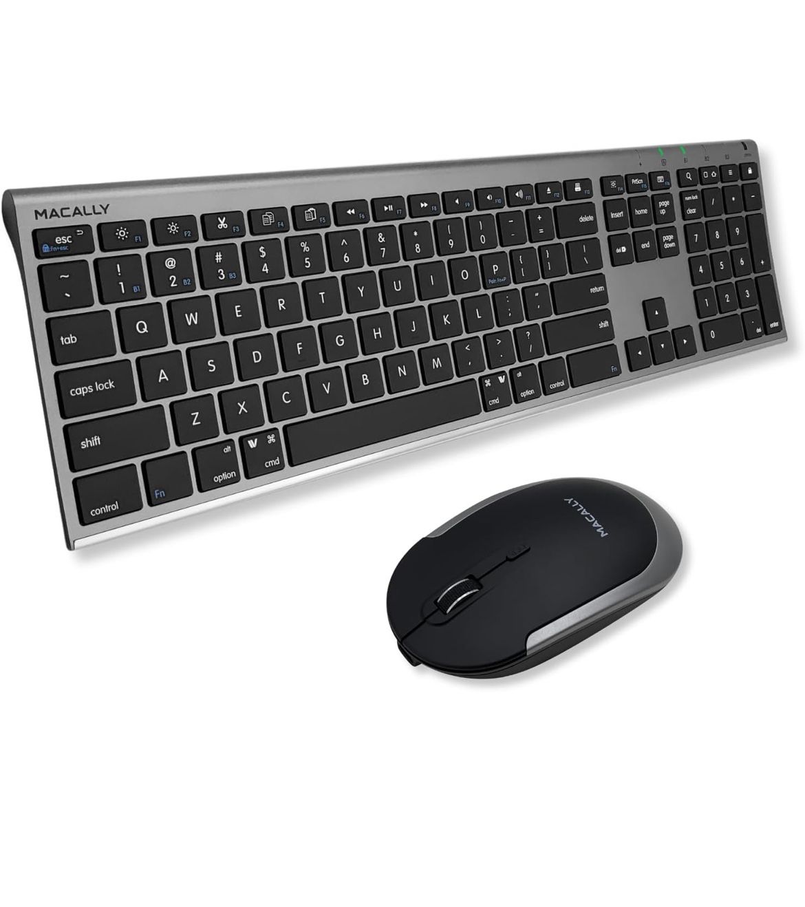 Macally Premium Bluetooth Keyboard and Mouse for Mac | Compatible Wireless Apple Keyboard and Mouse Combo (110 Keys Multi-Device Rechargeable) for Mac