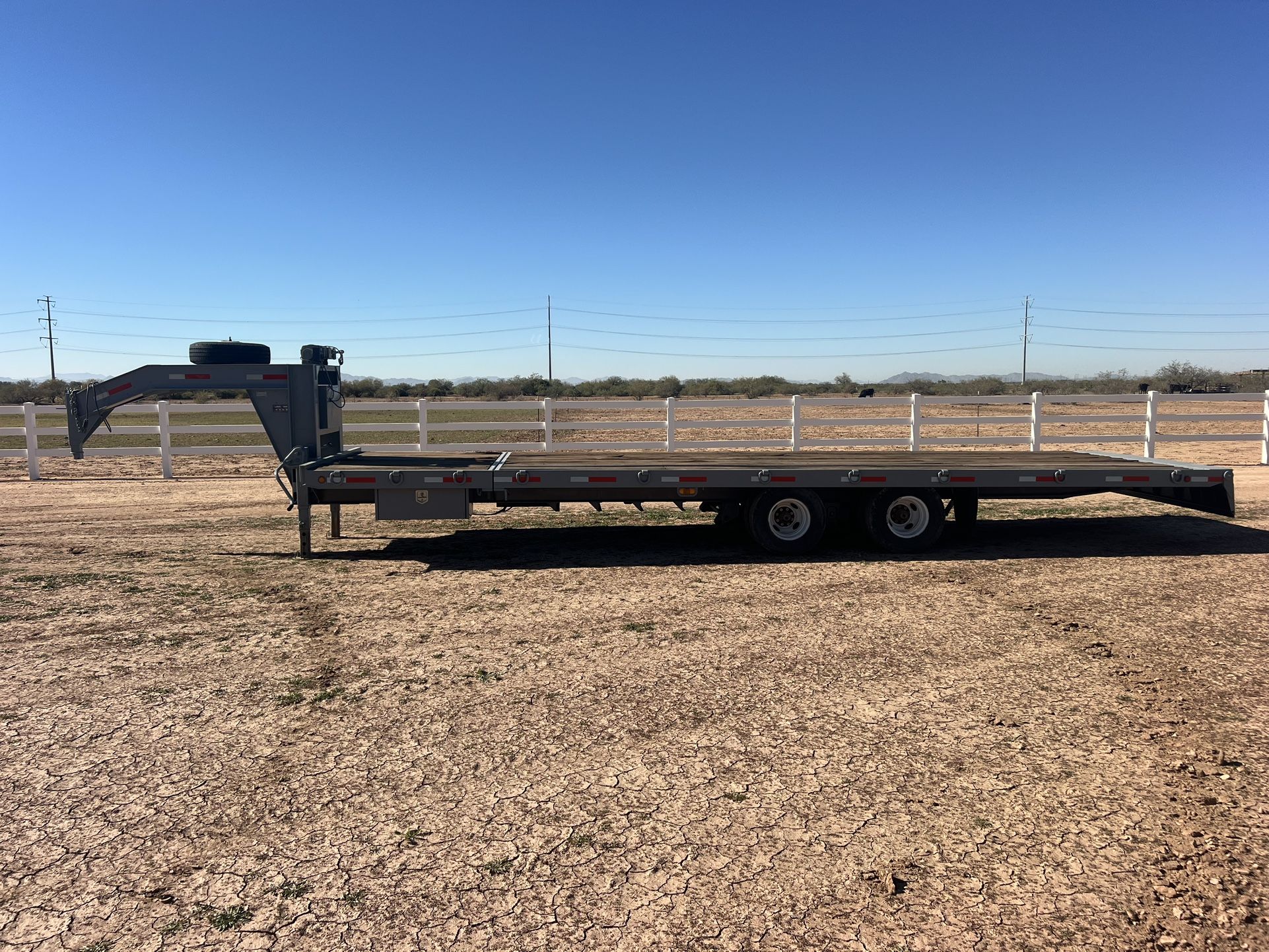 Selling My Fleming trailer. 30 ft Goose neck. Tandems and duels. Hydraulic tilt 2, 12lb axles, GVWR 26000lbs, weighs 11794. Electric over hydraulic brakes, tires are in good shape, 2-3 years old Has new Brazilian tik wood boards 15000lb wench Brand new paint job Storage box for chains and straps Had the trailer ran through and check to make sure the trailer was in good shape put new bushings and oil in the axles, aligned, there’s a picture with the list of things done recently. Trailer is practically brand new ready to work.