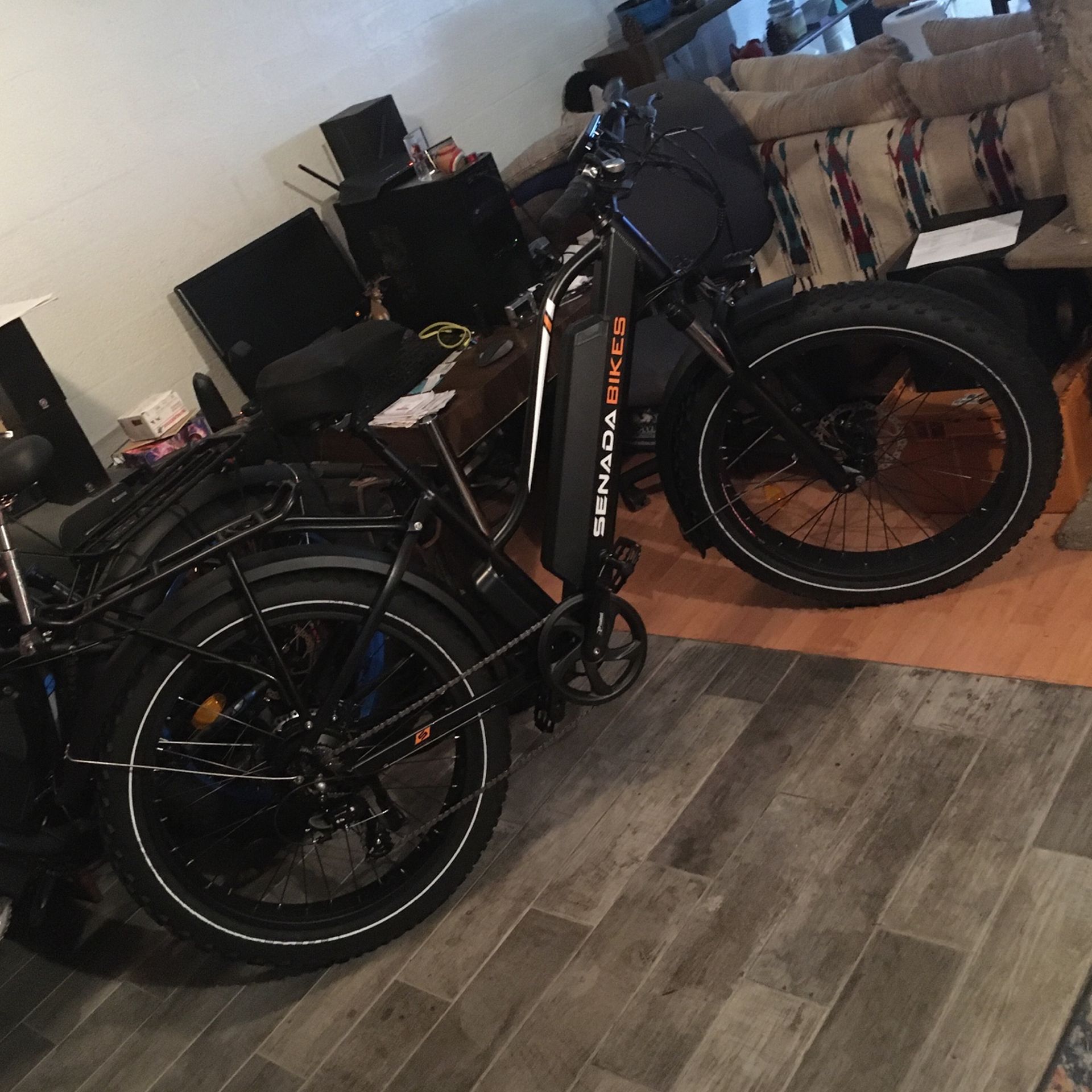 Brand New Herald Pro!!! Senadas Top of their lineup E-Bike for sale, 2100 list!!! This Herald Pro Super E-Bike, is by far the Best deal I have on every level, with crazy 95 Newton meters of wheel spinning torque and 35 mph. This is a true Hybrid, the Super bike of your dreams and has a 5 inches lower top tube height than a regular top tube and will accommodate any height people and still looks cool!!! This is the Only place in the world where you can get a 1000 watt motor with the crazy 95 Newton meters of torque!!! From setting 1 to 5, as low as 12 mph on #1 and 35 mph on #5, others bikes 16 to 25 mph for same price!!! Stupid 60/80 mile range and depends on whether U peddle and or use peddle assist or not, 48 volt lithium ion battery with 21 amp hrs run time, Super torque 1000 Watt, monster motor w/95 Newton meters of super torque in this brushless motor, others are 500, 750 watt, and half the torque, poor them!!! Black with some highlights, is what I carry but can get, all white with red highlights and black rim’s, all very cool indeed!!! Front fork with lockout, Huge 180mm disc brakes, 7 speed Shimano shifter and durrailure. Big soft seat, 26 by 4 inch knobbies, integrated led front light and rear taillight, break light and left right turn signals and rear, long fenders, Big and much better stopping with Huge 180mm Disc that stop on a dime etc etc . So much on it can't list it all!!! This is selling for 1,600.00, so Message me and I will get back to you asap and thanks for looking! Oh yeah come by for a demo ride for free, as many as you want!!! 2 year warranty from Senada ebikes on everything but battery that is one year and I Handle all for you and the industry Leading 5 Years of free adjusting, tuning if needed anytime from me. Although these are tanks and never seen one with issues yet but I am here if you need anything. No one else offers this kind of protection at any price, period!!! Oh yeah, can make any old bike {or new} into a awesome custom E-Bike with any amount of power and distance you want, it all depends on how much money you want to spend!!! Have fun be free and own the streets!!! Maybe slow to respond as do this on a computer but check off and on day and night so thx for your patience! Just message me to come see and ride this monster!!! Thx soooooo much for looking and hope to see you soon, Dana