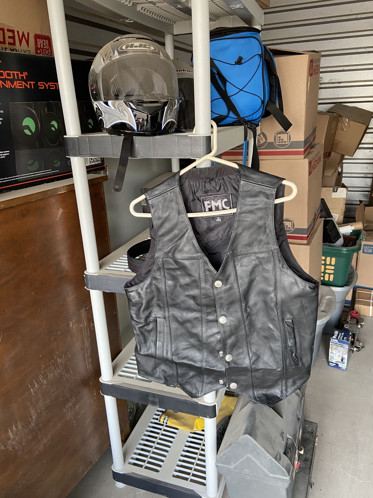 Black leather vest. Comes with black leather gloves.