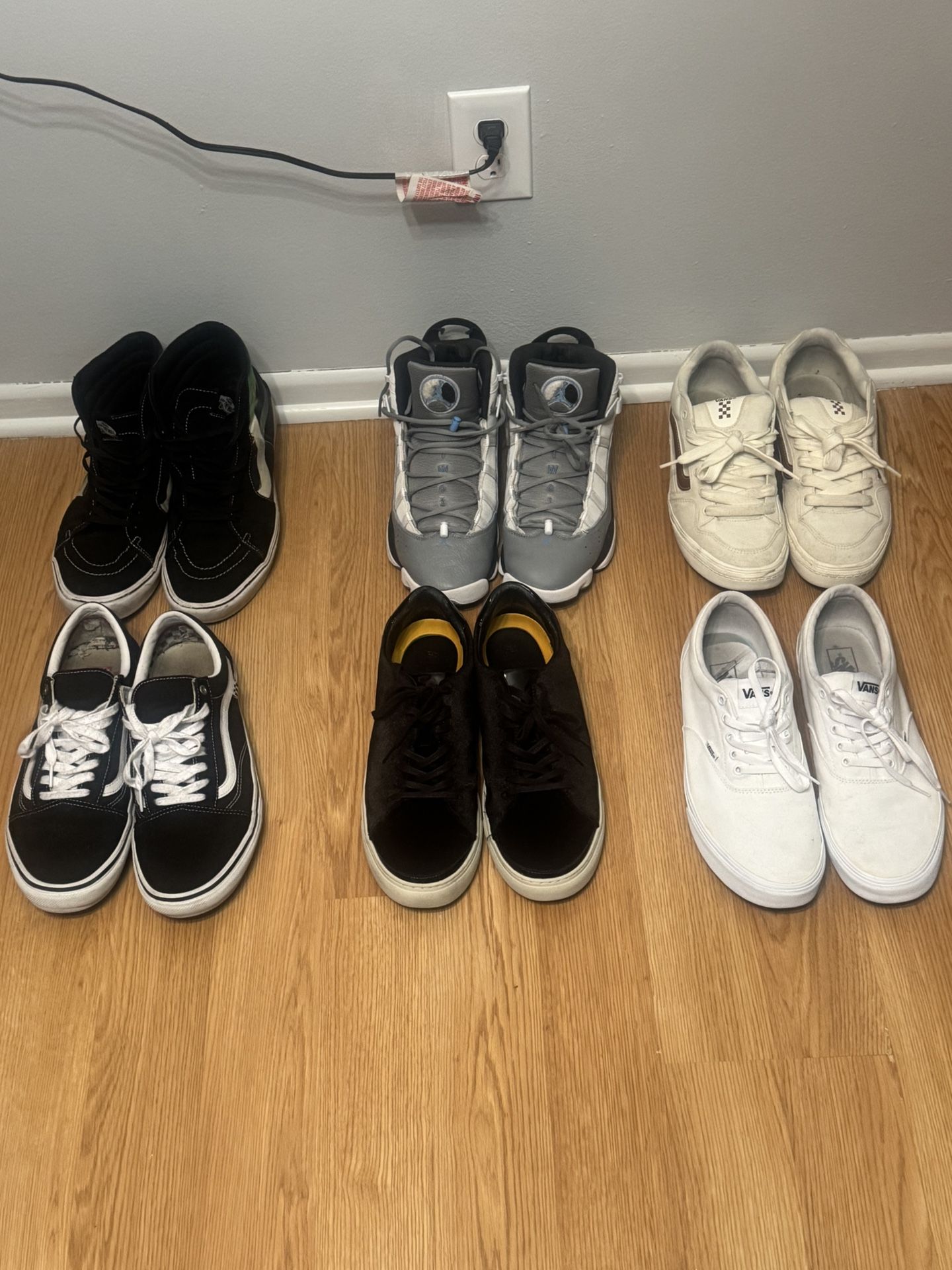Size 13 Men shoes for sale Vanz beige/$40 obo Vanz black and white/$30 Dress shoes / $10 Jordan 6 Rings / $50 obo White vans/ $30 High top vans/ $20