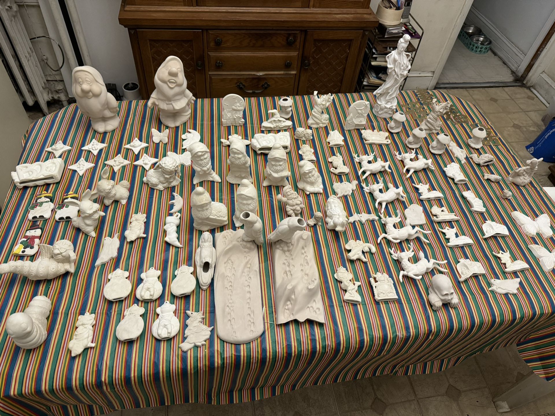 Here’s a lot of unpainted porcelain figurines just ready to be painted or glazed .. asking $300 for all including the vintage brass chinese letters .. serious buyers only please .. local pickup or drop off