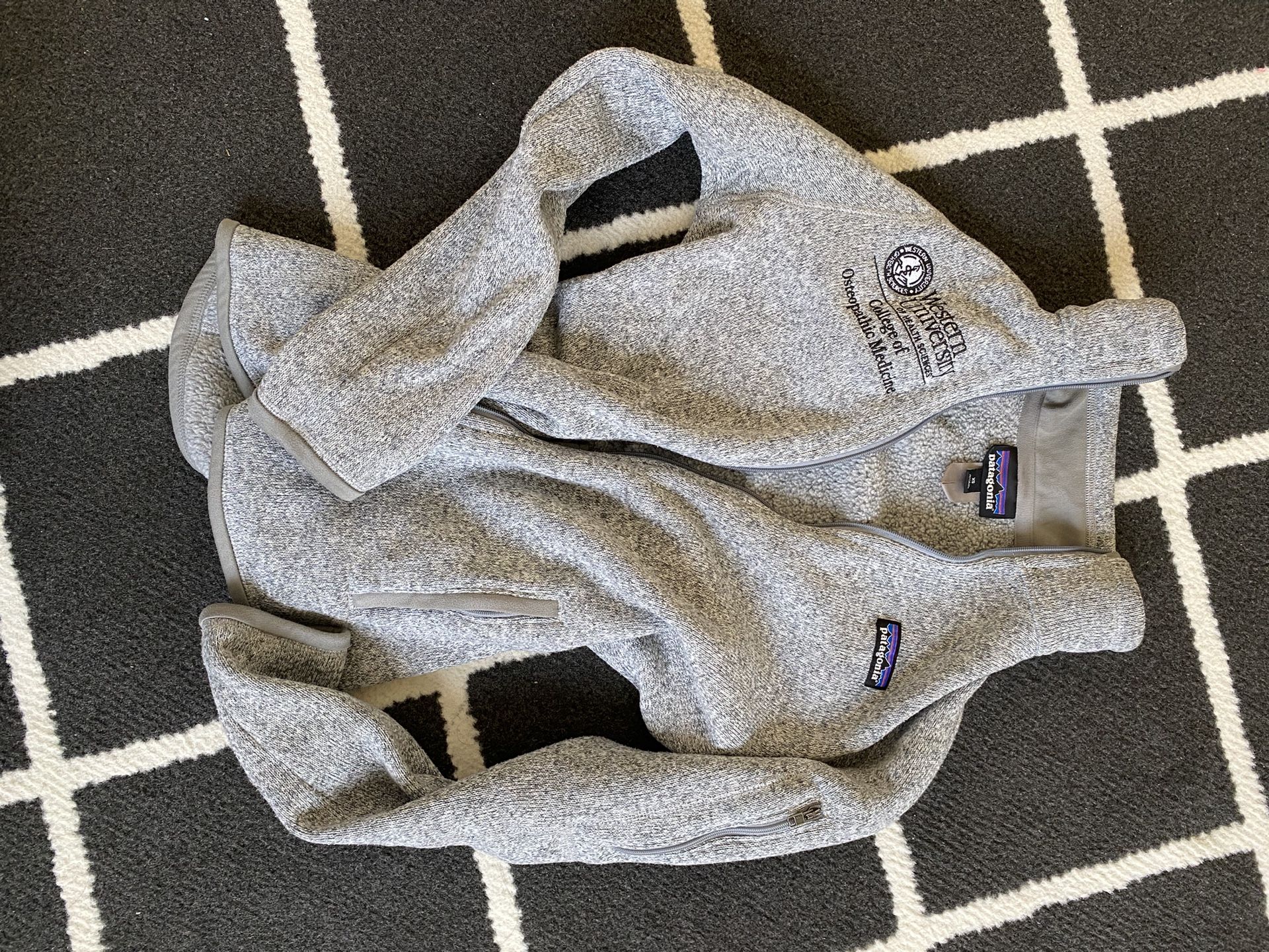 Extra small grey Patagonia jacket for women. Has Western University emblem.