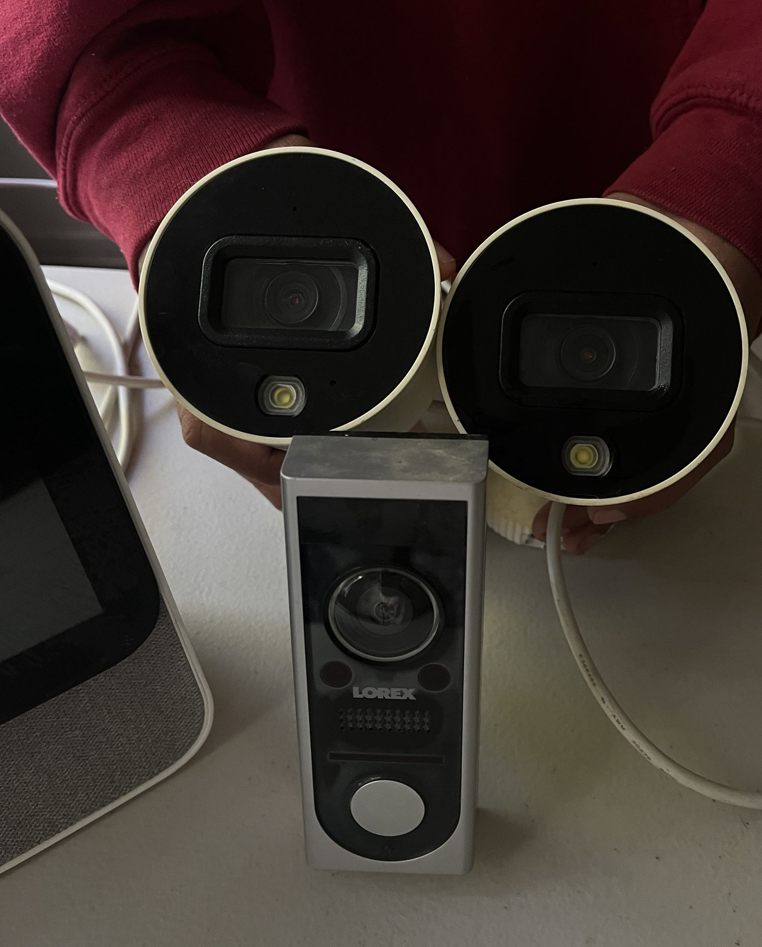 Comes with 2 cameras a doorbell and monitor