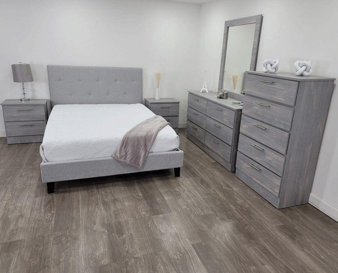 INCLUDES ⚪️ •QUEEN SIZE BED •DRESSER WITH MIRROR •CHEST •TWO NIGHTSTANDS (MATTRESS NOT INCLUDED)