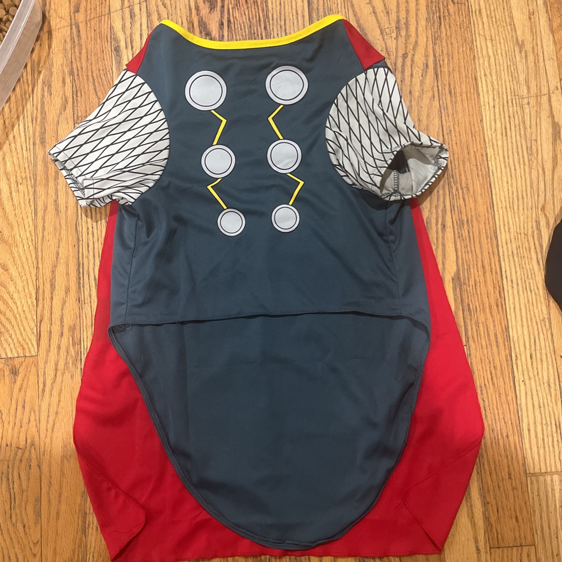 This item is free. My dog is 80lbs but it was too small. Size XL Thor Halloween costume