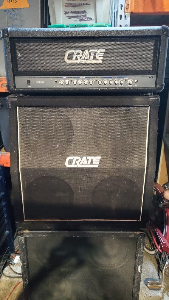 Crate GX900H Solid State 3 - Channel guitar amplifier with the 4x12 cabinet... this amp sounds killer- clean channel is very clean and the od channels will get you as heavy as you can imagine. Read the reviews on this thing it's a metal heads swiss army knife!! MAKE OFFER