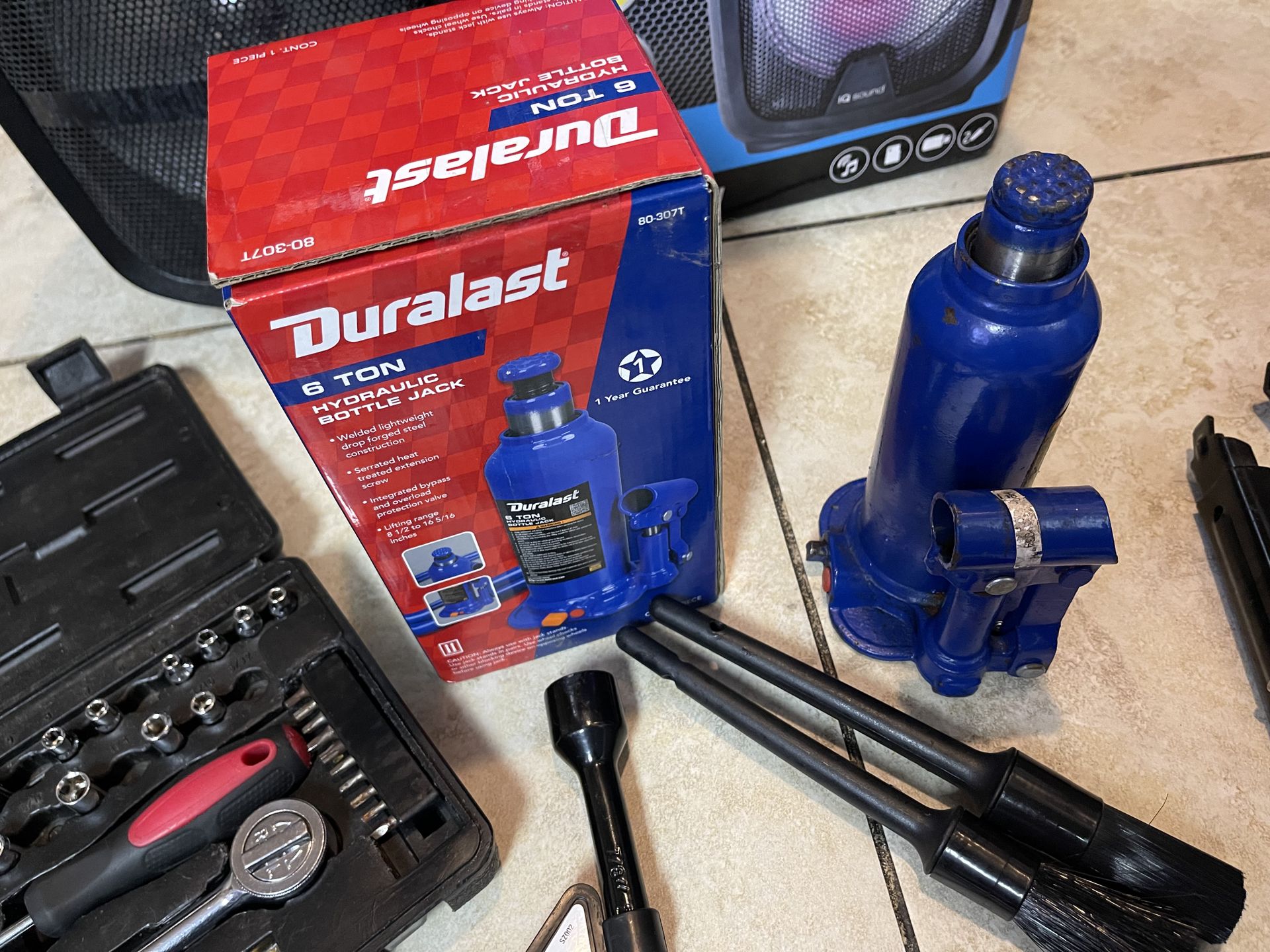 2 gatos para 6 ton. Uno está nuevo Caja con dados y mataca cruceta y otras accessories todo junto por $60 situado en la ciudad de El Monte ca.