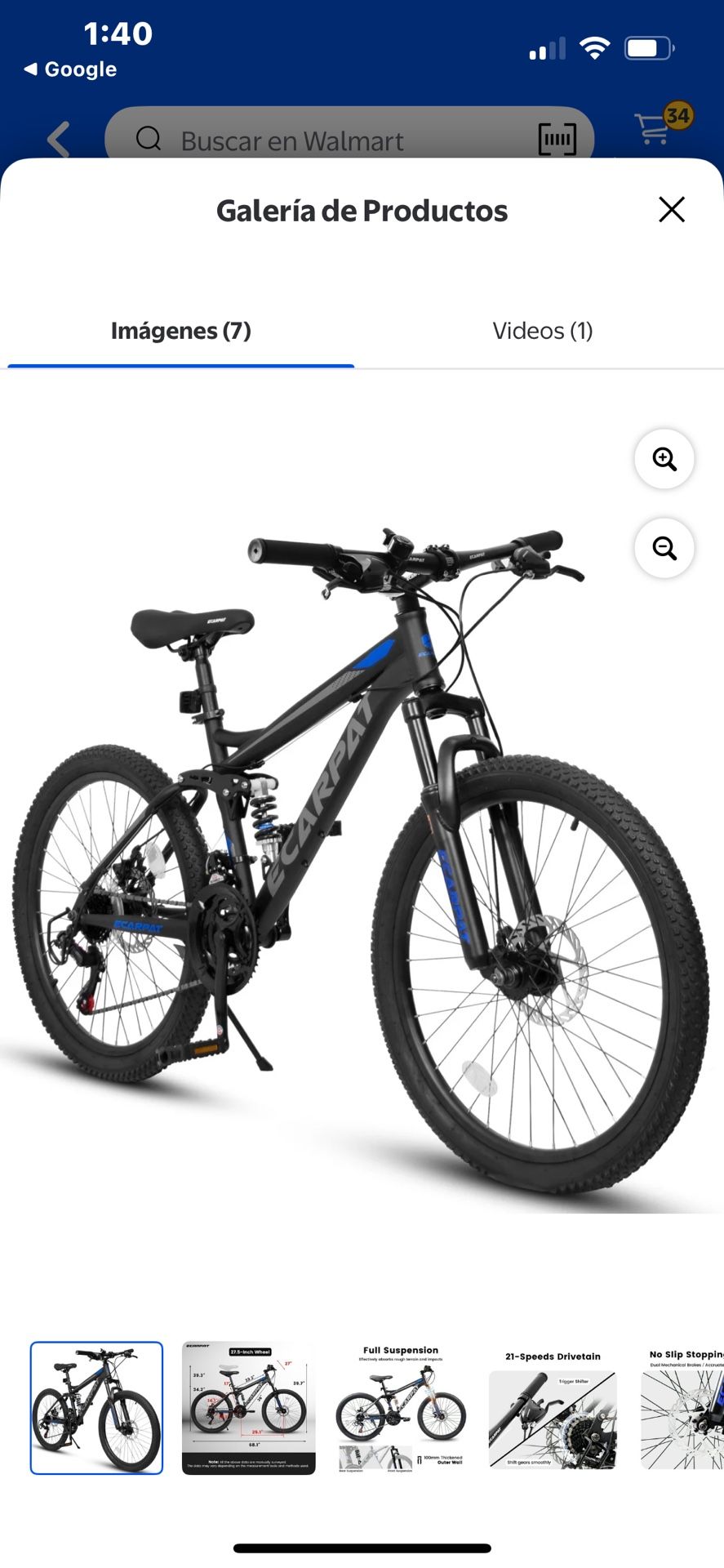 Men's and women's mountain bike, 21 speeds, 27.5 inch, dual shock absorber and full suspension, high carbon steel frame for adults, black color.