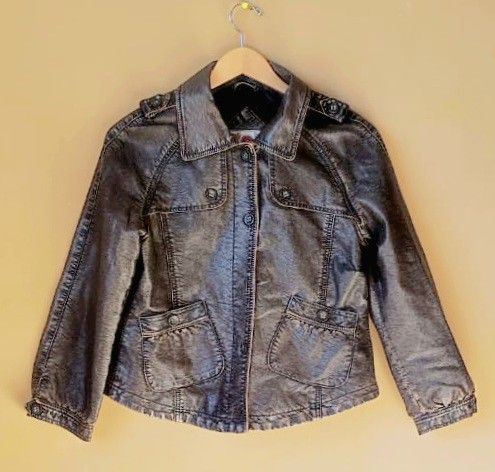 Beverly Hills Polo Club Faux leather jacket coat top women's Size M medium Distressed