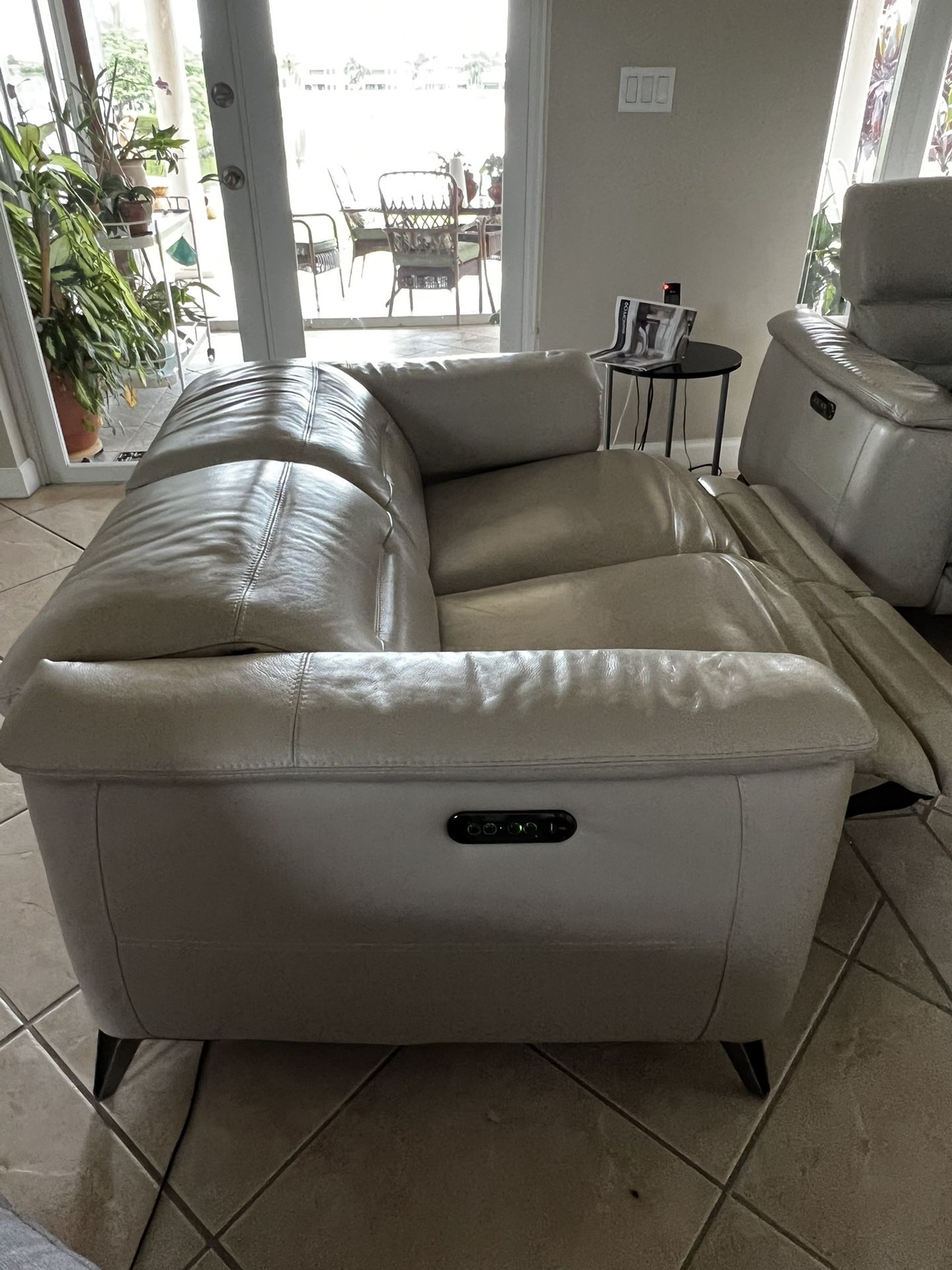 Power Reclinable leather Sofa , USB charging , great condition less than 2 years old
