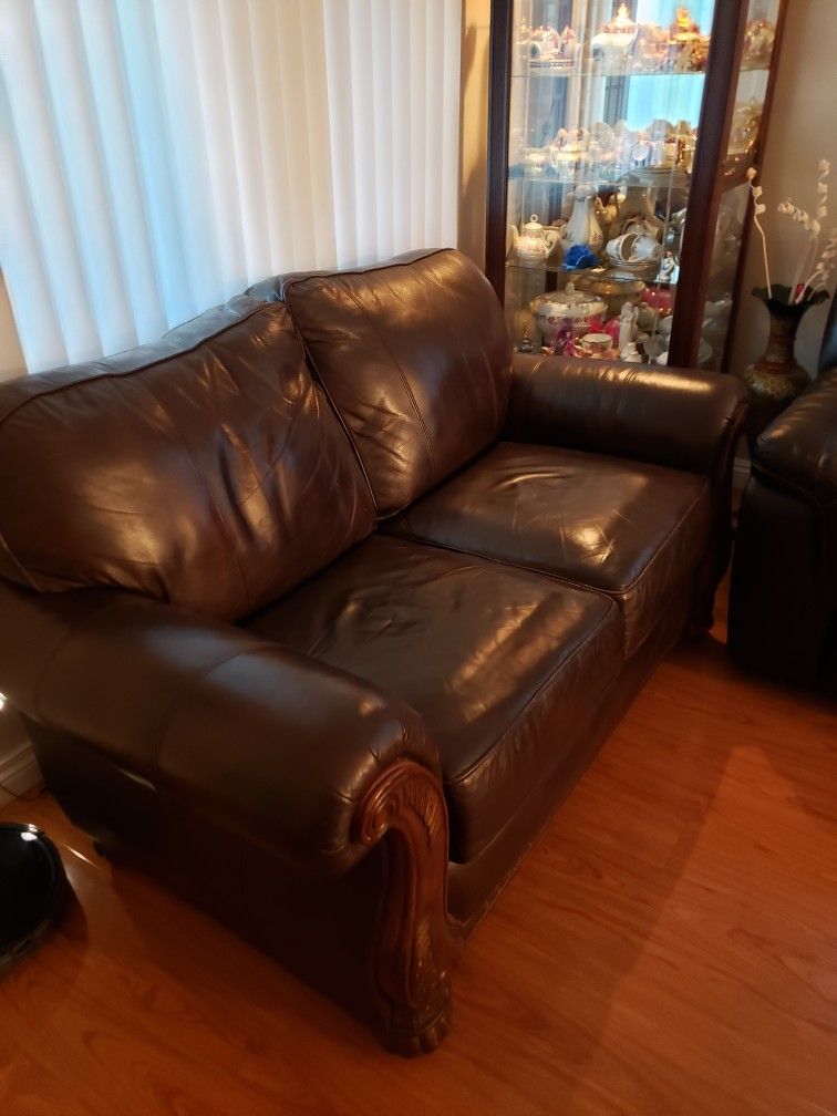 Very nice wooden loveseat couch from Ashley furniture. New, this cost $2,000.00. Accepting reasonable offers. In good condition. Pick-up only. Thank you.