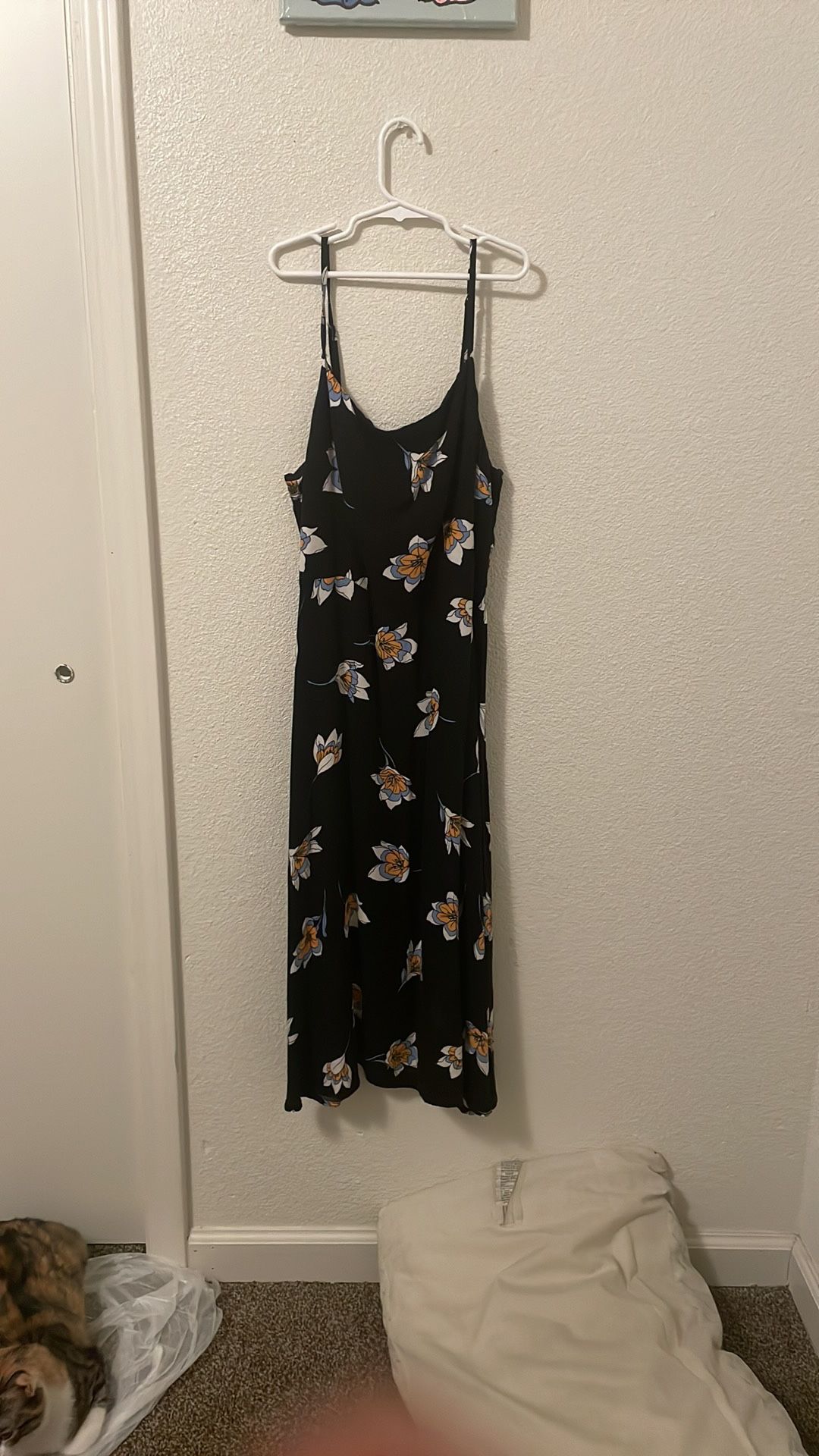 This dress is flowy and great on! Material is soft and goes past knees almost at ankle.
