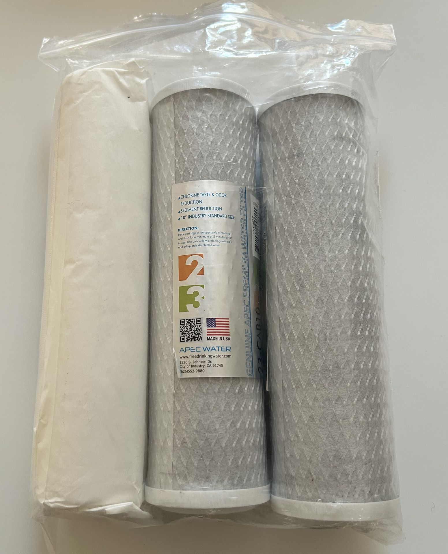 FILTER-SET APEC Pre-filter Set for All Under Counter ULTIMATE RO Systems (Stages 1 - 3) New in package + two new. Genuine APEC Premium water filters with instructions
