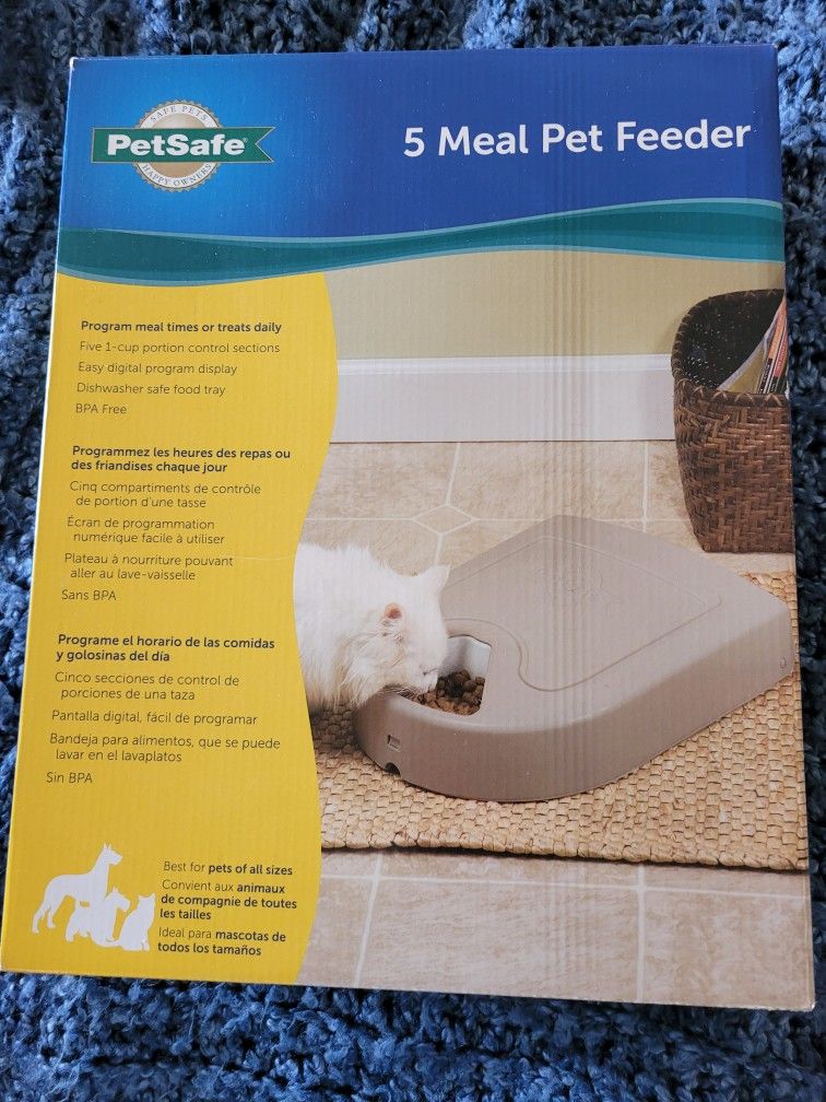 Never used, automatic 5 Meal Pet Feeder, requires 4 D batteries