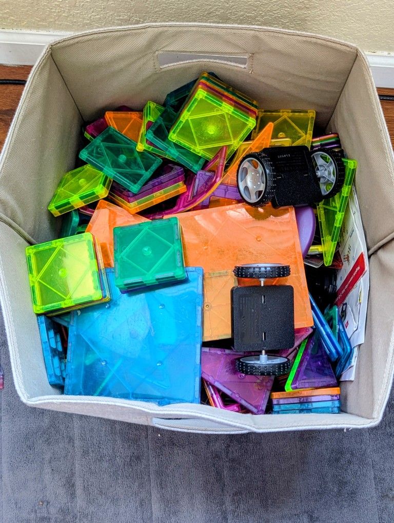 Large assorted Magna-Tiles set with wheels. Many shapes and sizes included. There are around 3-4 different magna tiles sets. Clean, gently used, no broken pieces. From a smoke-free home.