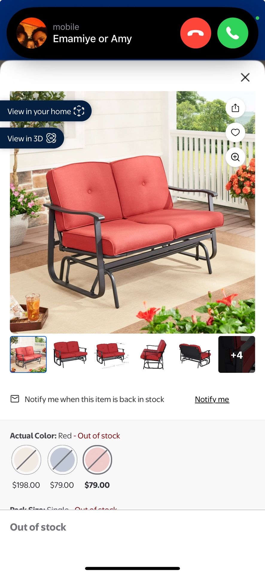 Outdoor swinging chair
