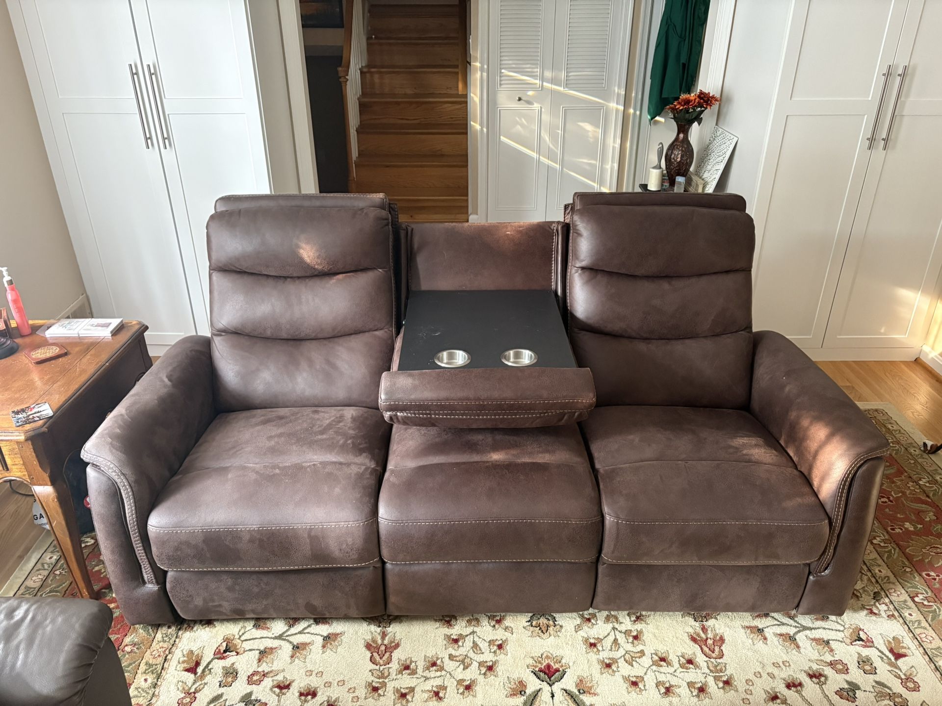 Couch for sale, only one out of two seats reclines the other does not recline the mechanism is broken otherwise provides 3 seating Dimension 84"W x 39"D x 41"H
