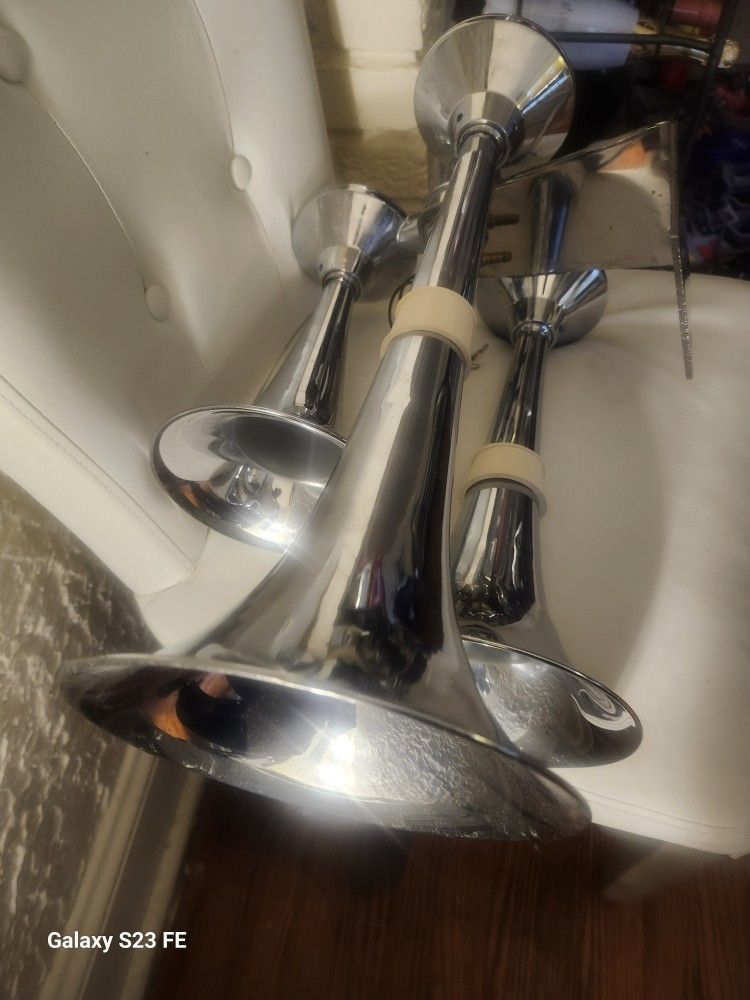 Used HORN BLASTER NOT SURE IF BRASS, ALUMINUM OR CHROME. THIS CAME OFF OF A TRUCK AND HAS BEEN SITTING AROUND