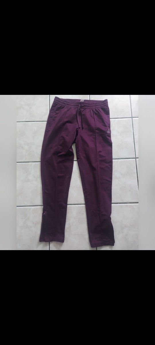 Excellent condition Reebok track pants in a gorgeous purple color. Elastic waist with drawstring and front pockets. Ankles have nice quality zippers too! Piping down the front legs for an added touch of detail. Women's size small Measurements: Across top of waist: 15" Rise: 10: (regular / mid rise ) Inseam: 30" Athleisure sporty casual gym work out chill fashion style vibes contemporary streetware hip hop euro european fall back to school comfy comfortable cozy sports athletic wear 90s 00s 2000s y2k joggers sweats sweatpants sweat pants