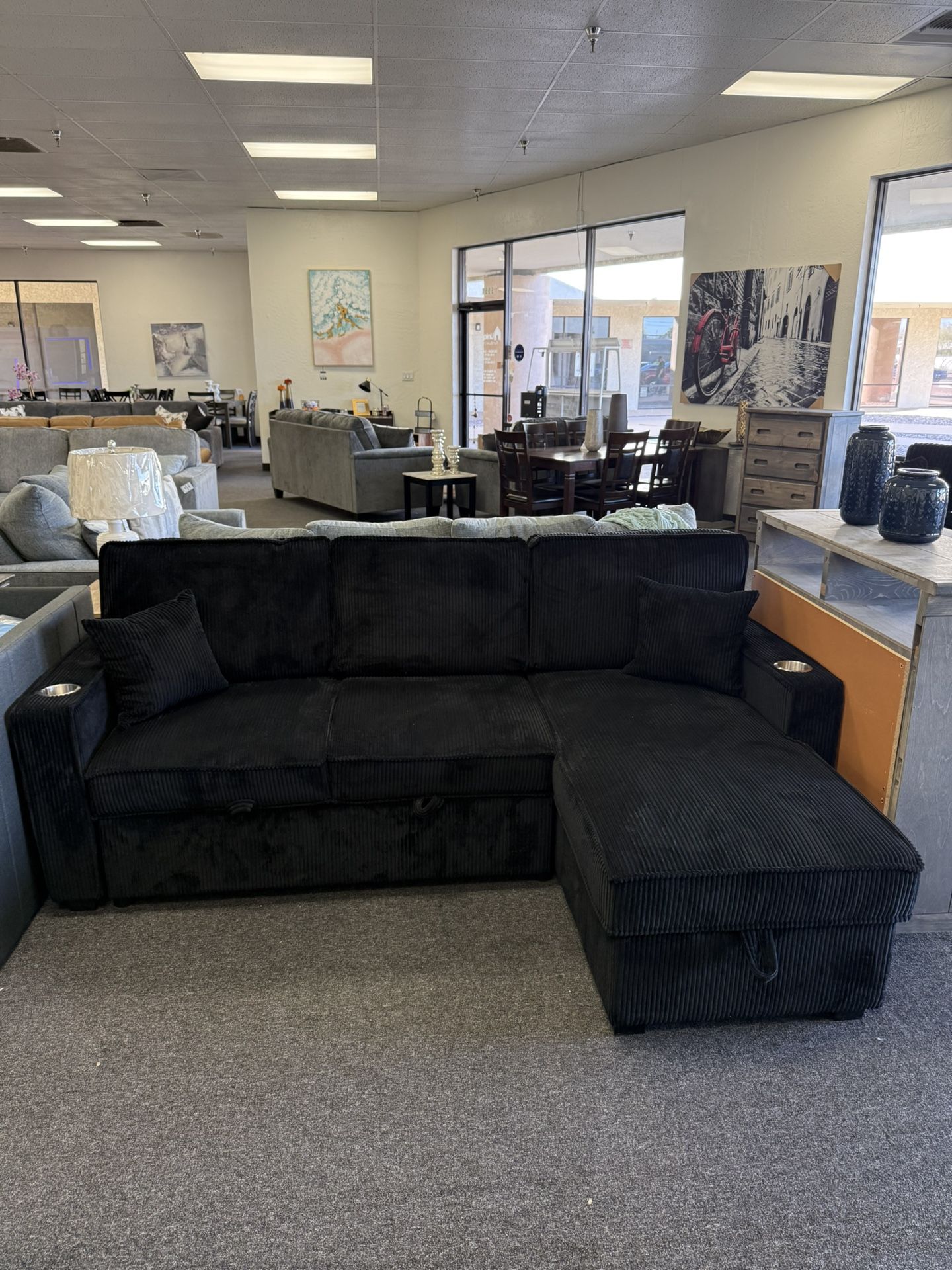 Black Corduroy Sleeper Sofa With Storage Chaise