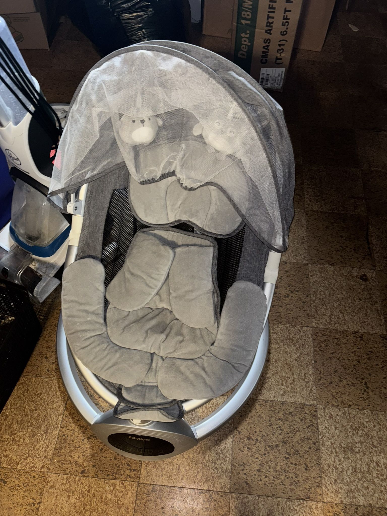 BabyBond Baby Swings for Infants, Bluetooth Infant Swing with Music Speaker, 3 Seat Positions, 5 Point Harness Belt, 5 Speeds and Remote Control - Portable Baby Swing for Indoor and Outdoor (Silver) Used but like new paid $120 asking for $50