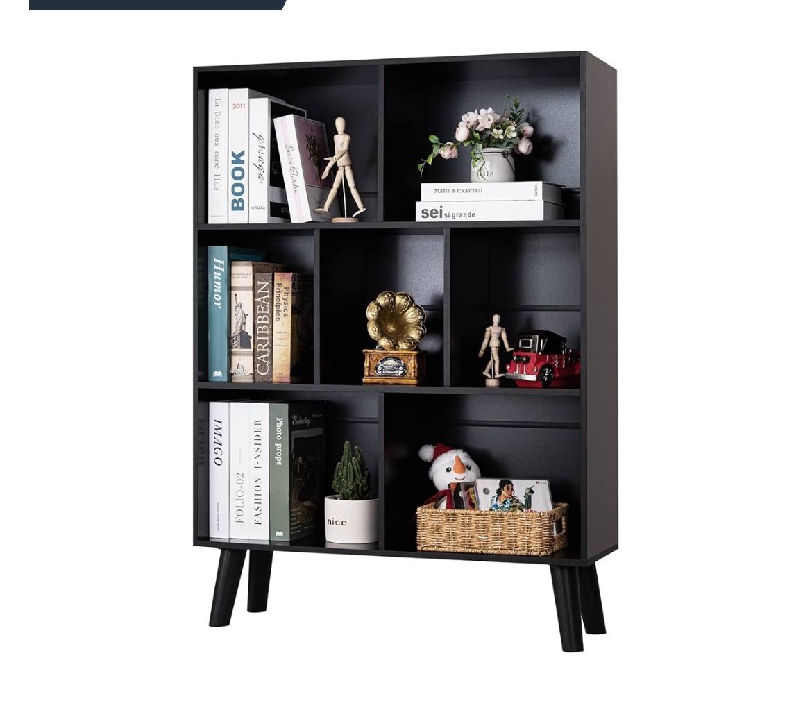 Black Bookshelf,3 Tier Modern Bookcase with Legs,Bookshelves Wood Storage Shelf, Open Book Shelves Cube Organizer,Freestanding Short Bookcases
