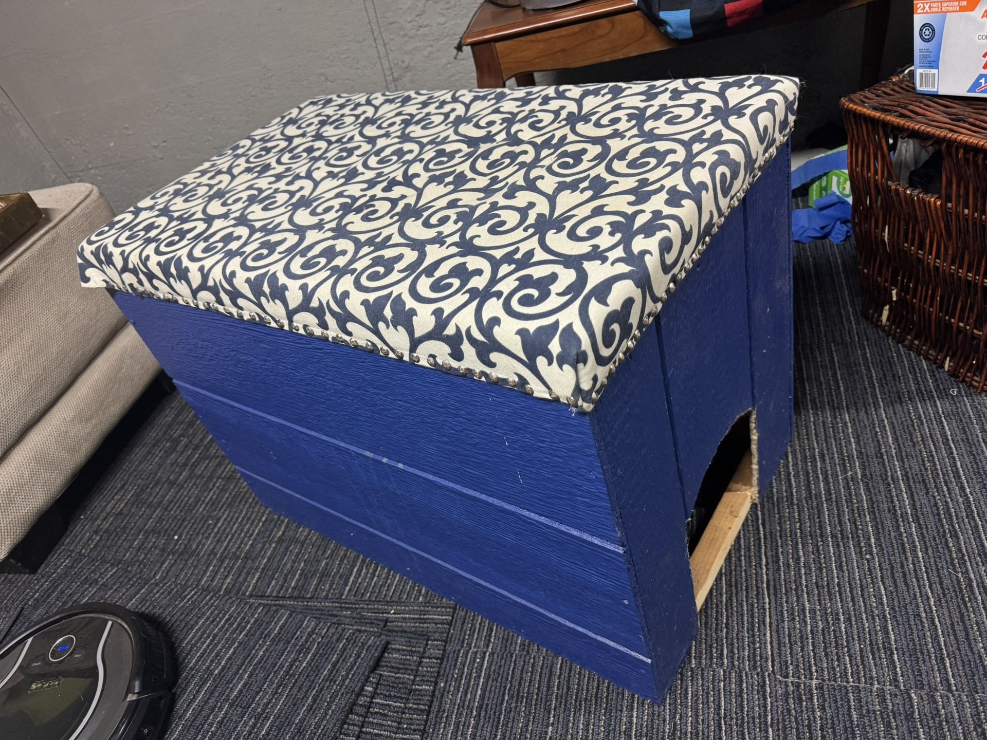 Got this bench at a garage sale, cut a hole into the front for a pet house but it never got used, perfect for little dog or cat, the top is soft. Pick up in Vancouver Obo