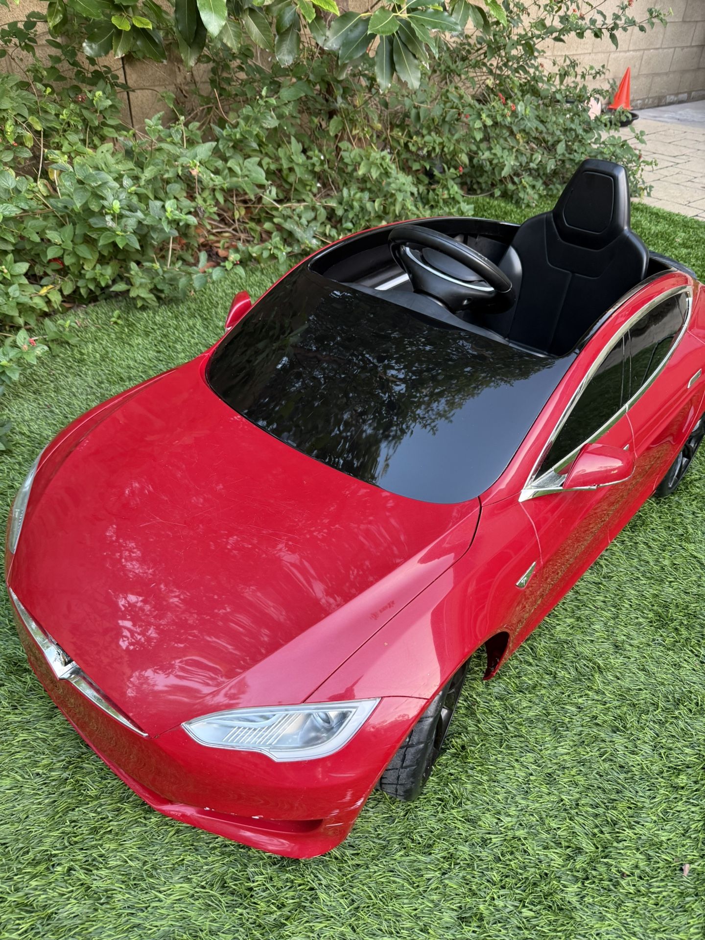 AUTHENTIC DESIGN DETAILS: The Tesla Model S for Kids delivers the superior Tesla experience for your toddler. Just like a full-size Tesla, the car charges directly through the charge port without needing to remove the battery LITHIUM ION BATTERY: The Tesla Model S for Kids is the first and only lithium ion battery powered car for kids. Flight Speed Lithium Ion technology provides 3X the play per day: longer run time, faster charge time FUN & FAST DRIVING: With two speed settings, this electric car for kids travels at 3 or 6 MPH. The car travels in reverse at 3 MPH REAL CAR FEATURES: The working LED headlights, frunk storage (front trunk), working horn, and AUX input with cord all add to this premium experience