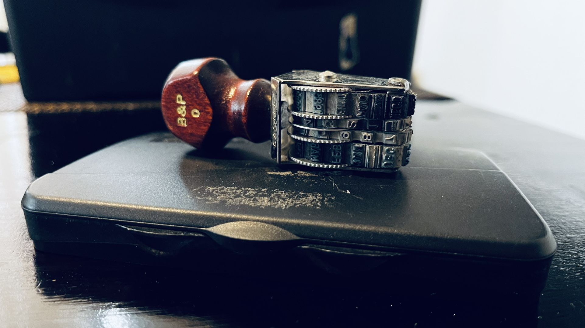 Vintage date stamp with ink pad. Goes up to 1985 but it has “PAID” - “REC,D” - “ENT,D”