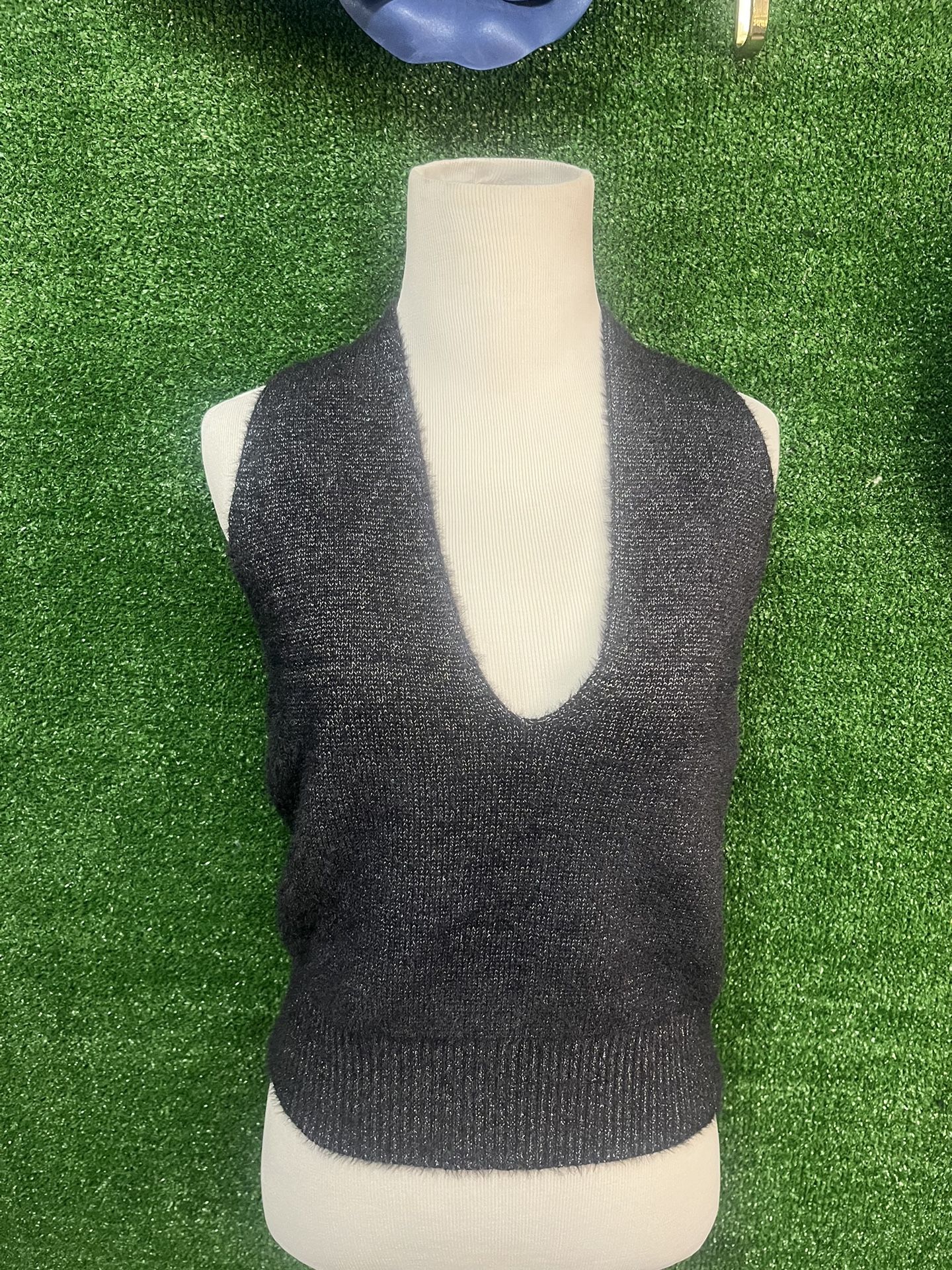 By Anthropologie Deep-V Fuzzy Black Sweater Vest Size Large NWT Brand New