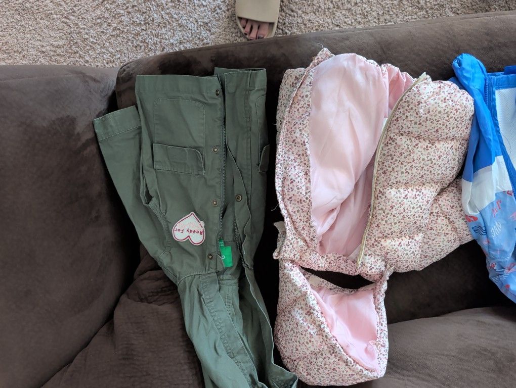 Green jacket 12-18 months Puffy pink jacket 12 month Nike blue jacket 2 t Great condition. No stains!!!