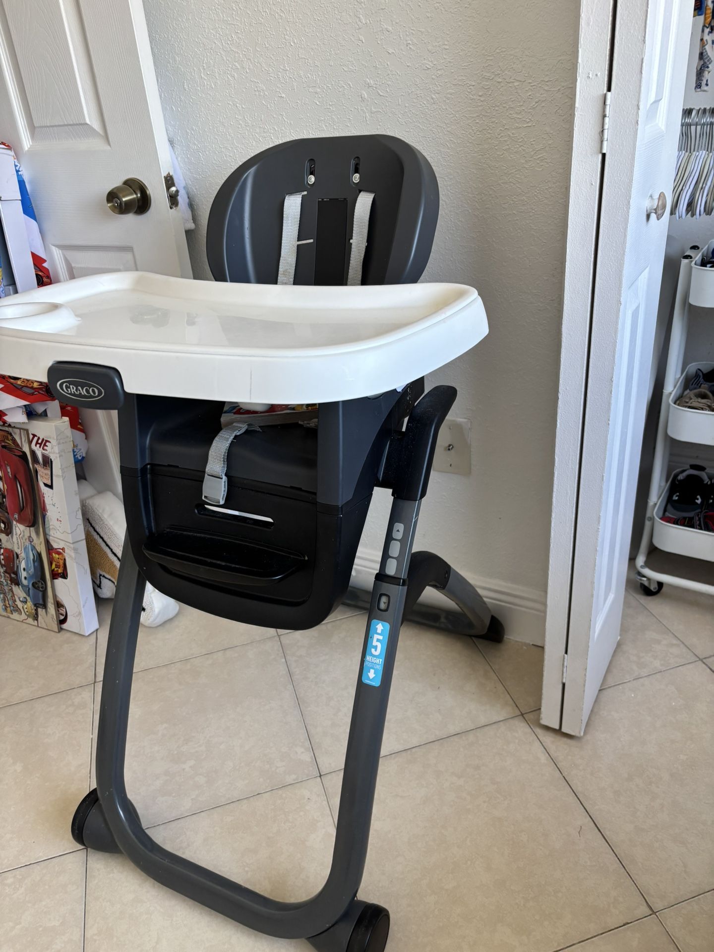 Graco high chair in great condition just missing the cushion insert I took it off because it was easier to wipe down the high chair like this versus a cloth insert always getting stained