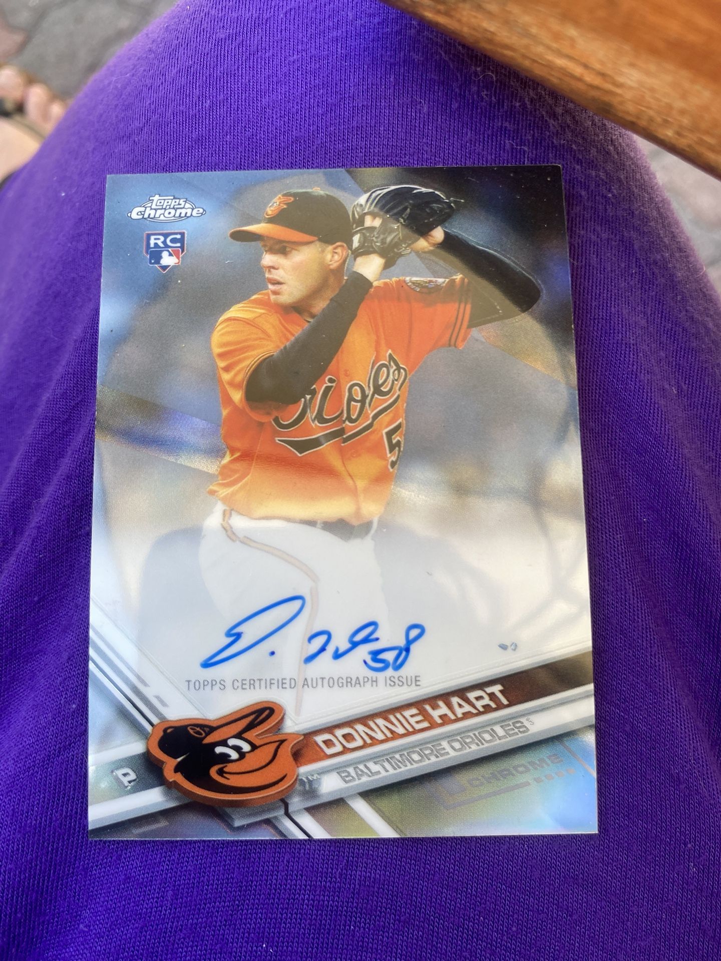 Donnie Hart - pitcher with the Baltimore Orioles autographed rookie card -Serial number # 183/499 Topps chrome 2017- RA-DH