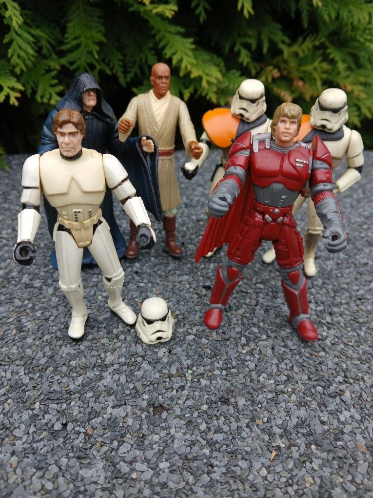 (Pre-owned) A mix vintage year lot ranging from 1996 and 1997. Some are Hasbro, and some are Kenner brand. This comes with only the loose figurines as seen in pictures and no accessories. Luke as a Strom trooper does come with his helmet. Figurines are in great condition. Not broken, no cracks or major flaws. Some light wear. Little to none. *** No holds, meet-ups, and will drop off within reason.*** Thanks for looking! Feel free to message me with any inquiries. -Mark (PappyPourPaints) Size: Roughly/ 3.75" inches