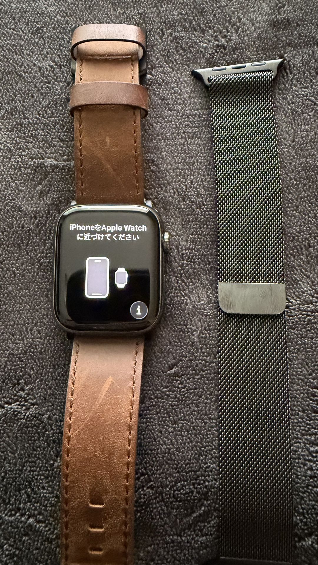 Apple Watch Series 7 45mm stainless steel for sale. Comes with leather band and stainless steel band including charger. In good condition works fine and charges fine as well. Can test before purchasing.