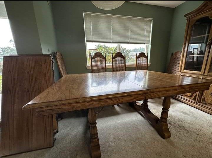 66” x 44” with (2) 20” leaves and 6 chairs