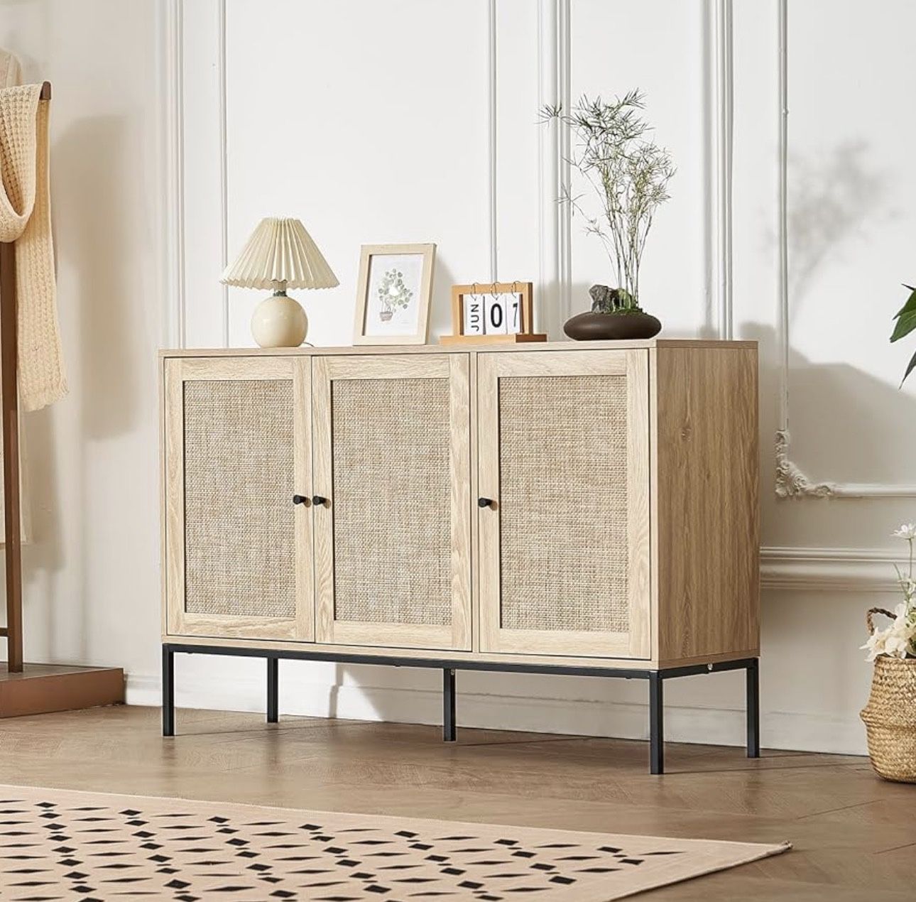 VEVOR Rattan Storage Cabinet with 3 Magnetic Doors and Adjustable Shelves, Sideboard Buffet for Hallway, Entryway, Living Room, or Kitchen, Natural $100
