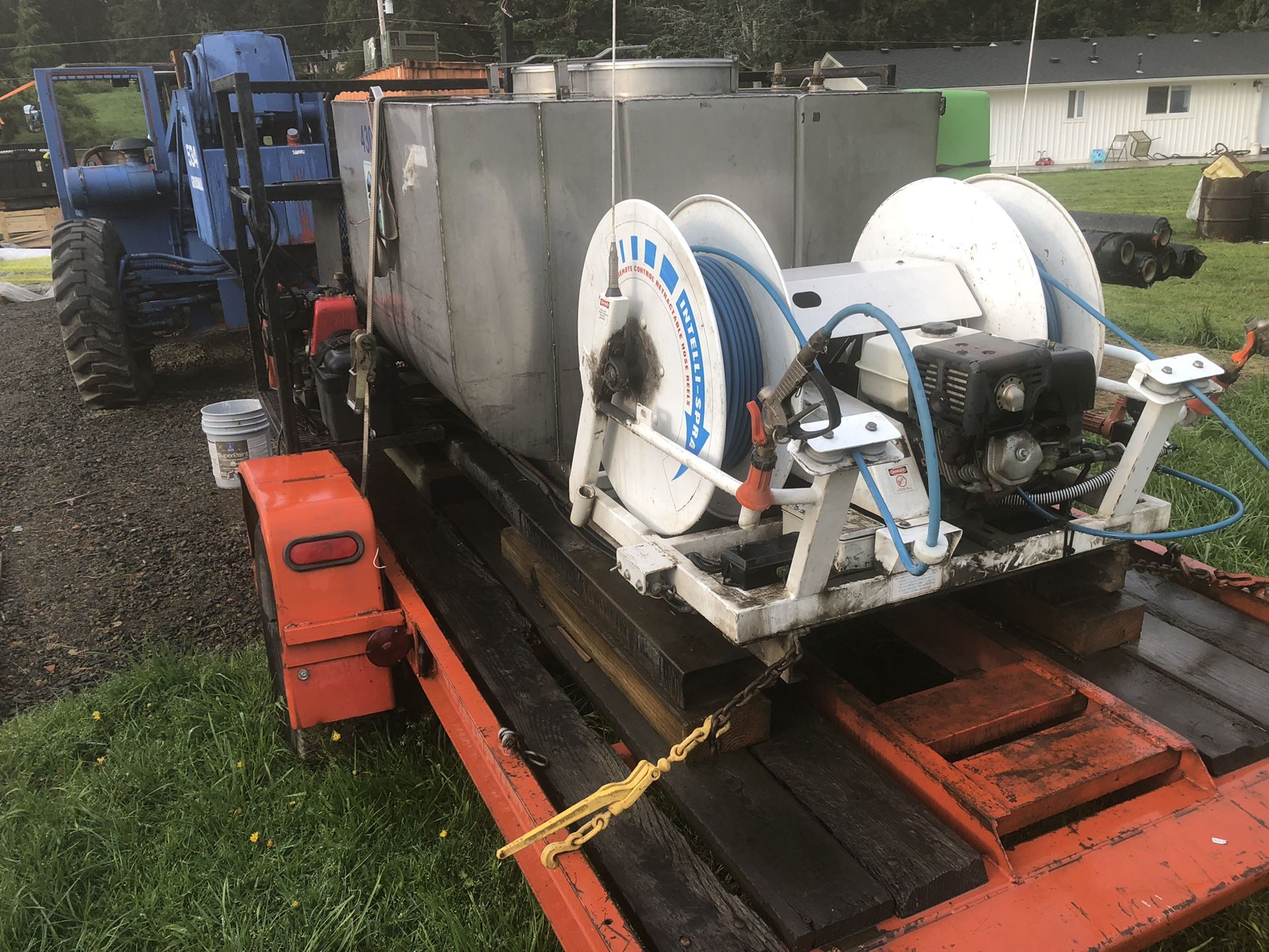 Herbicide sprayer and trailer. Operates as it should. trailer 220"L x 92" W Includes 2 hand held remotes. Tires good