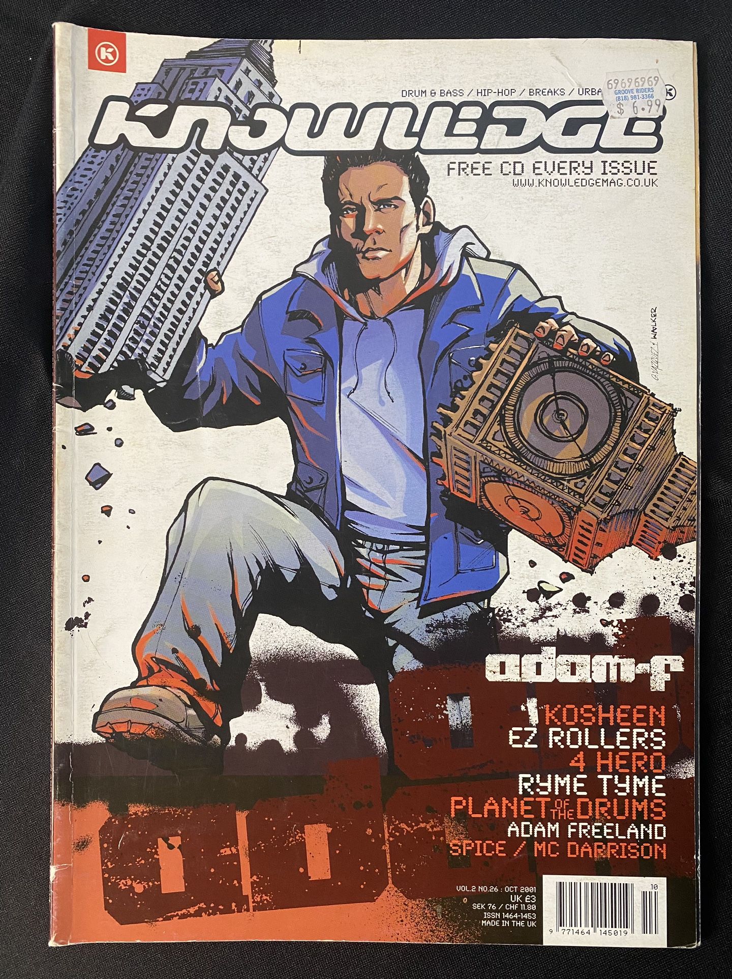 Knowledge Magazine Vol 2 No 26 October 2001 Adam F EZ Rollers 4 Hero Ryme Tyme Planet Of The Drums Adam Freeland Spice MC Darrison Note: This magazine actually comes with its original CD and the original case! This is literally the only copy you can find available online as well as the CD! This is incredibly rare, a piece of Drum & Bass history.