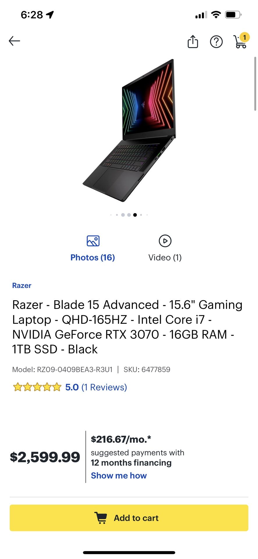 RAZER BLADE 15 Advanced Gaming Laptop 1TB