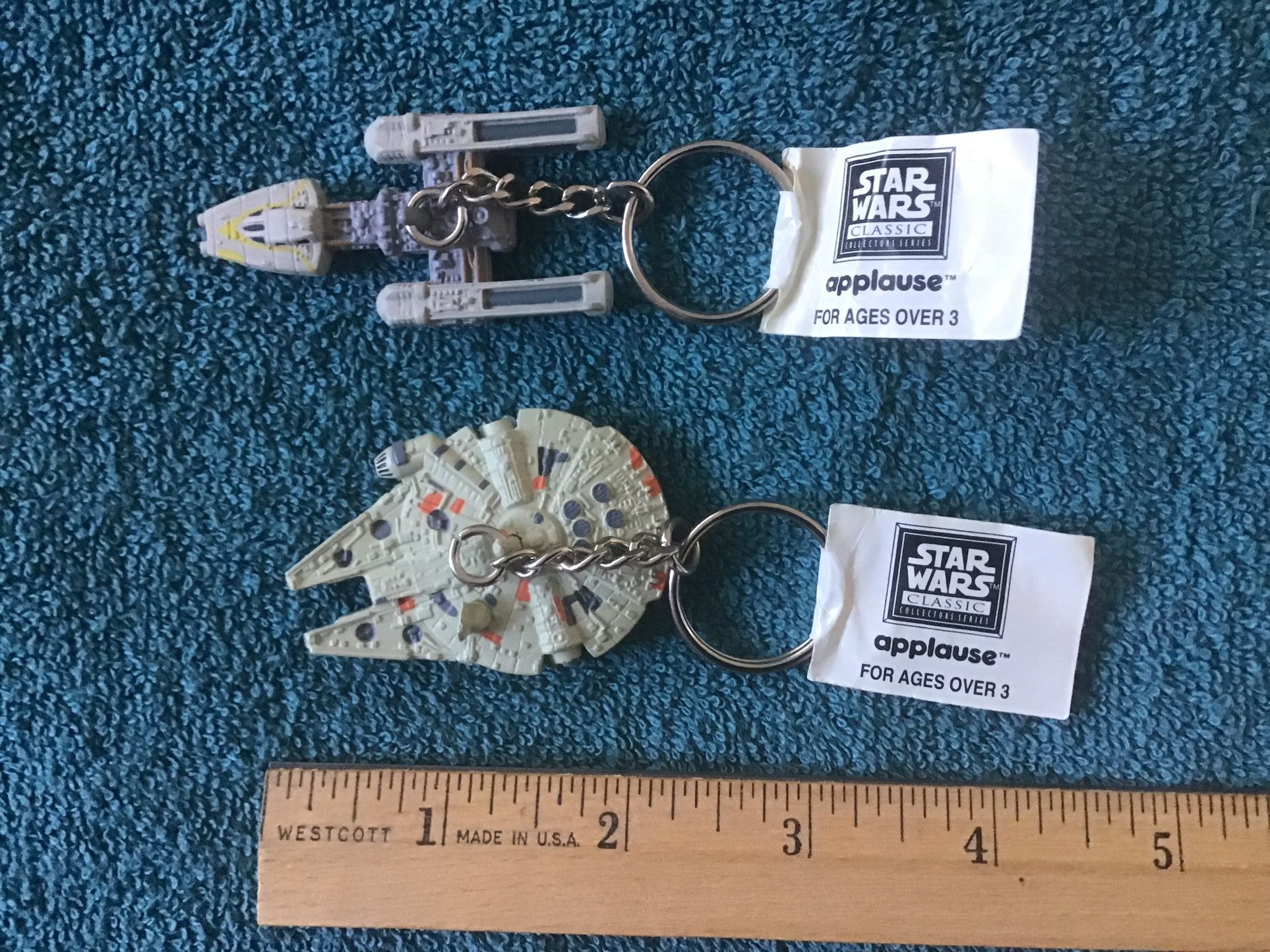 Vintage 1995 Applause Star Wars keychains (2). Millennium Falcon and Dangler Rebel Y Wing ships. Never used as tags are still on both. The set of 2 Star Wars keychains is $10 total. Located off beach and terry in Huntington Beach.