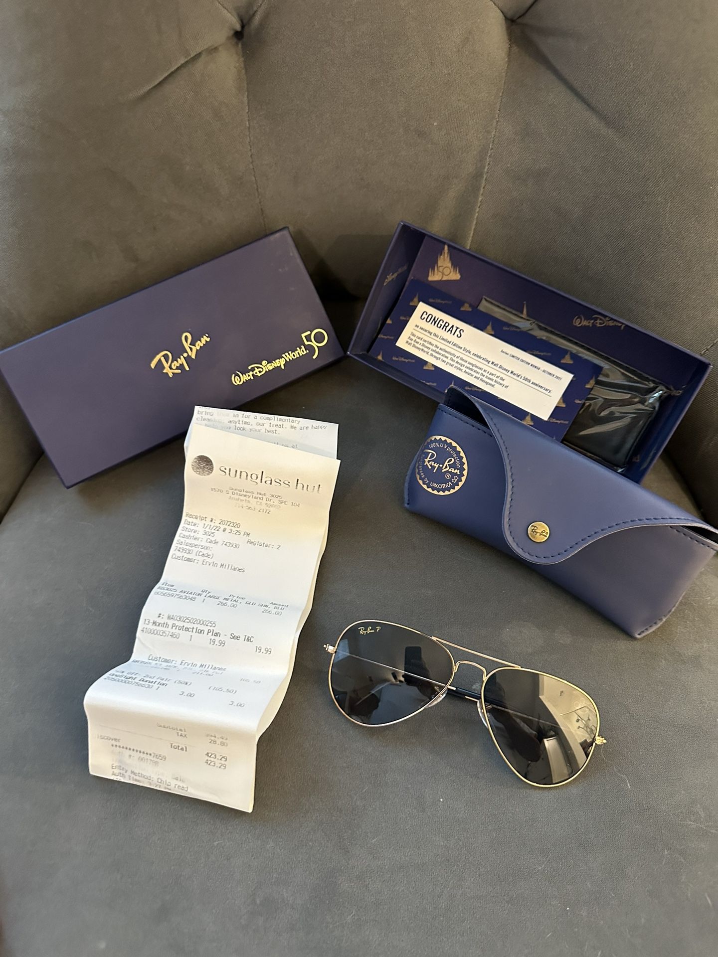 Up for sale is a rare 50th anniversary ray band sunglasses new in box with receipt.