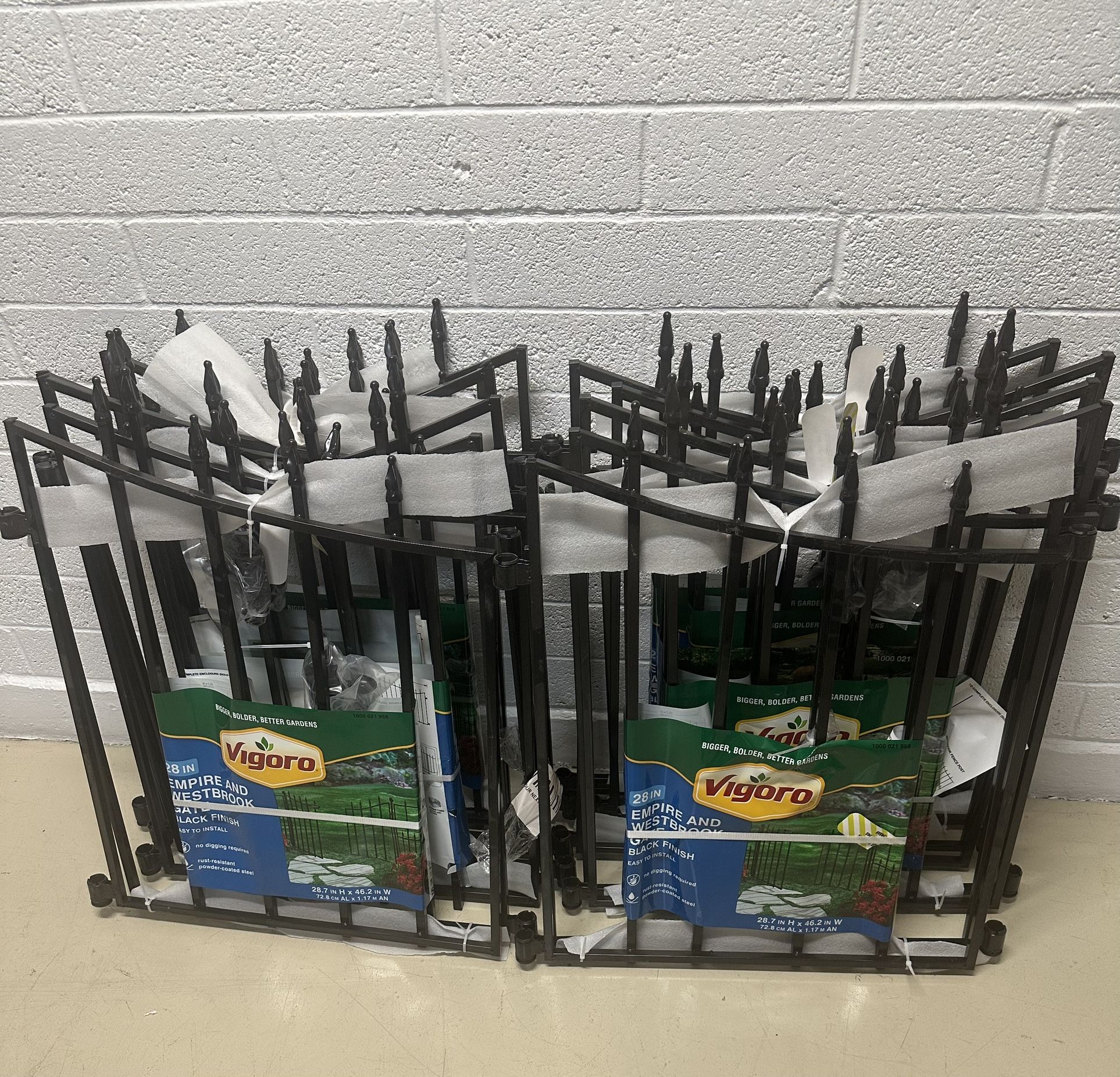 Vigoro Empire/Westbrook 28 in. Black Steel Decorative Garden Fence Gate New $10 each set firm I have 10 sets $100 for all 10 sets