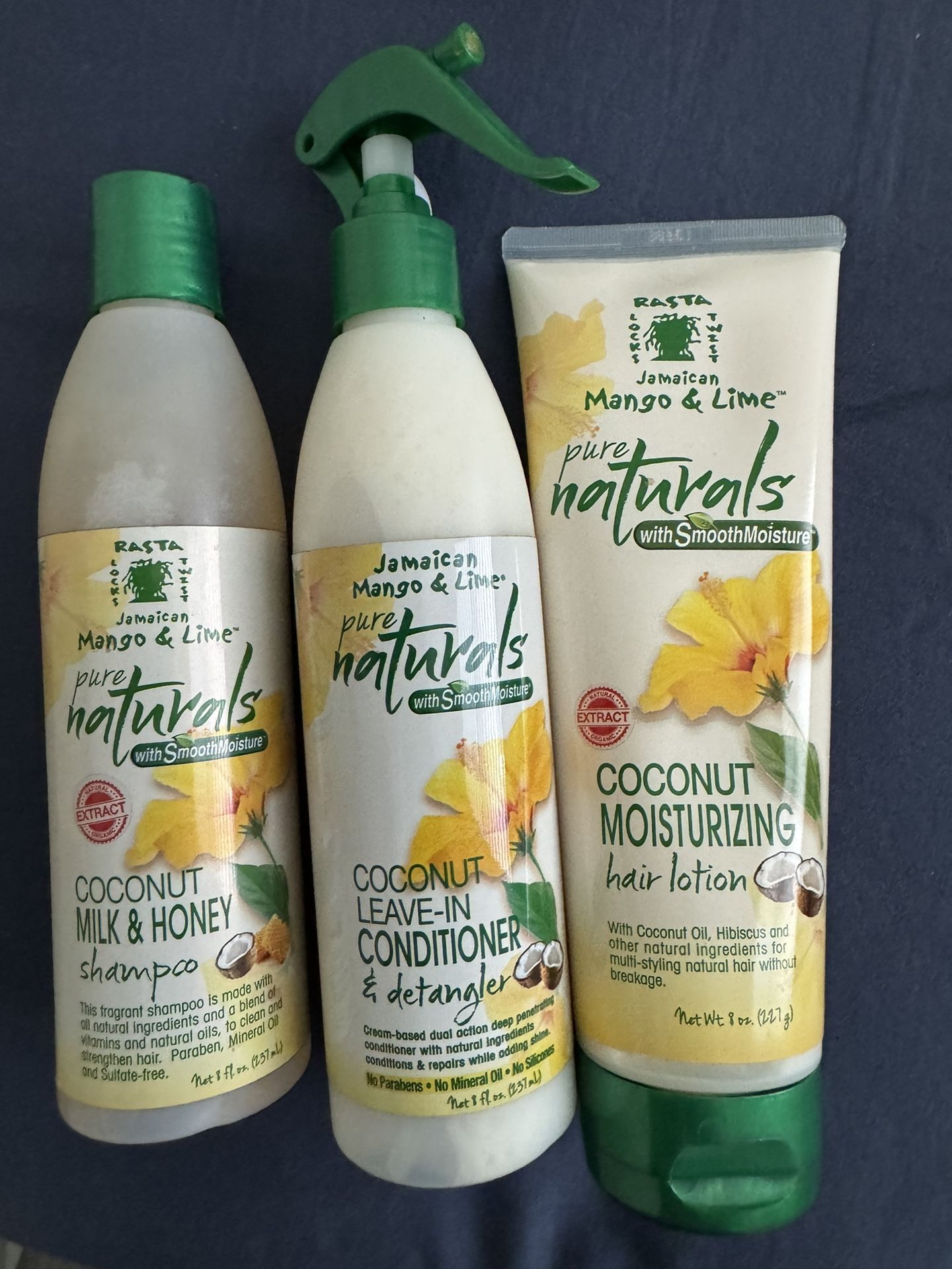 Jamaican Mango & Lime Pure Naturals Coconut Milk & Honey Shampoo 8oz, 8 Oz Jamaican Mango & Lime "Pure Natural Coconut Moisturizing Hair Lotion" - 8 Oz Jamaican Mango & Lime "Pure Natural Coconut Leave-in conditioner " - 8 Oz