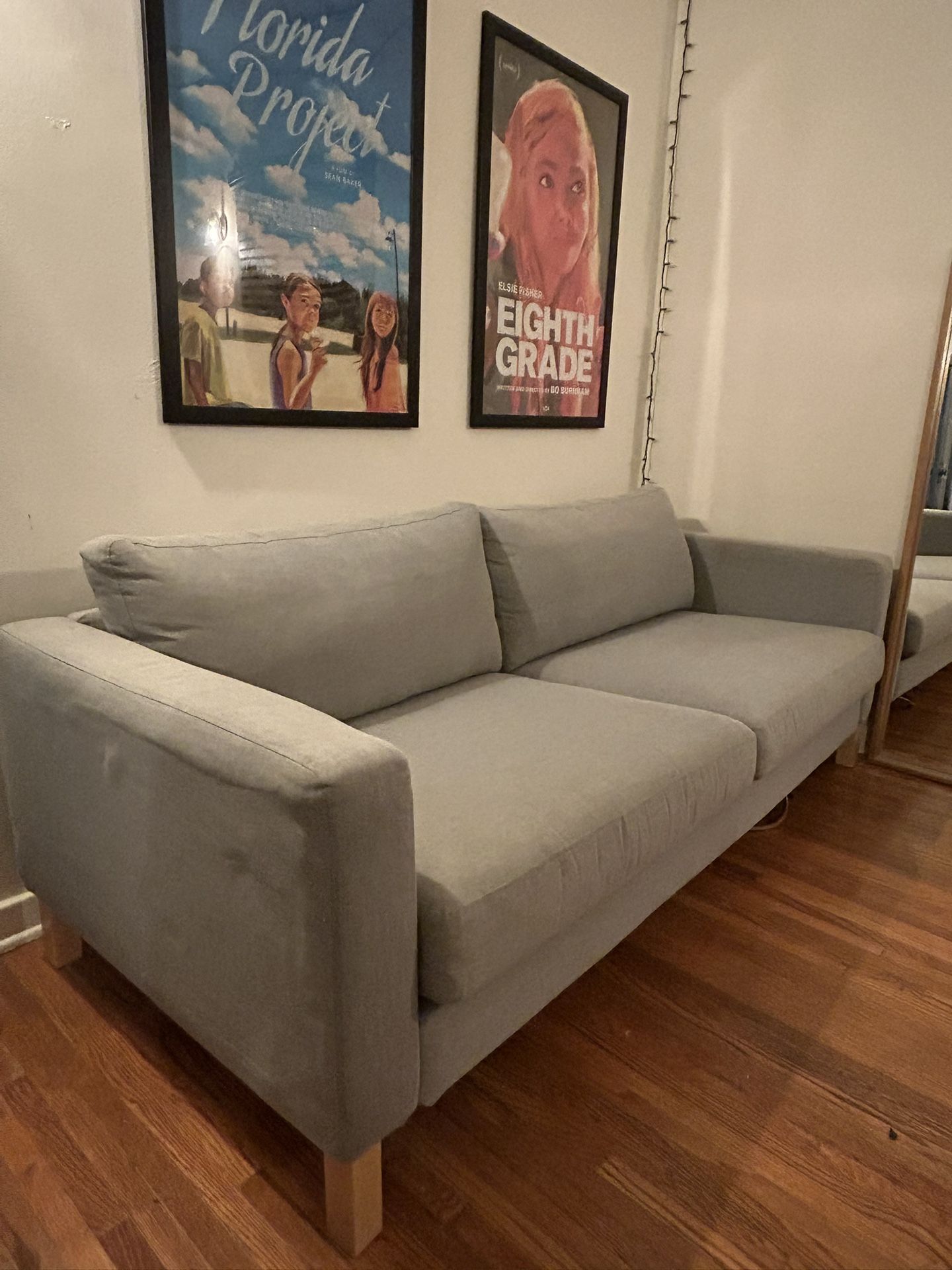 Used light gray ikea couch. Some wear due to the light color but still in great shape. Height - 2’ 8” Width - 3’ Length - 6’ 8” $100 OBO