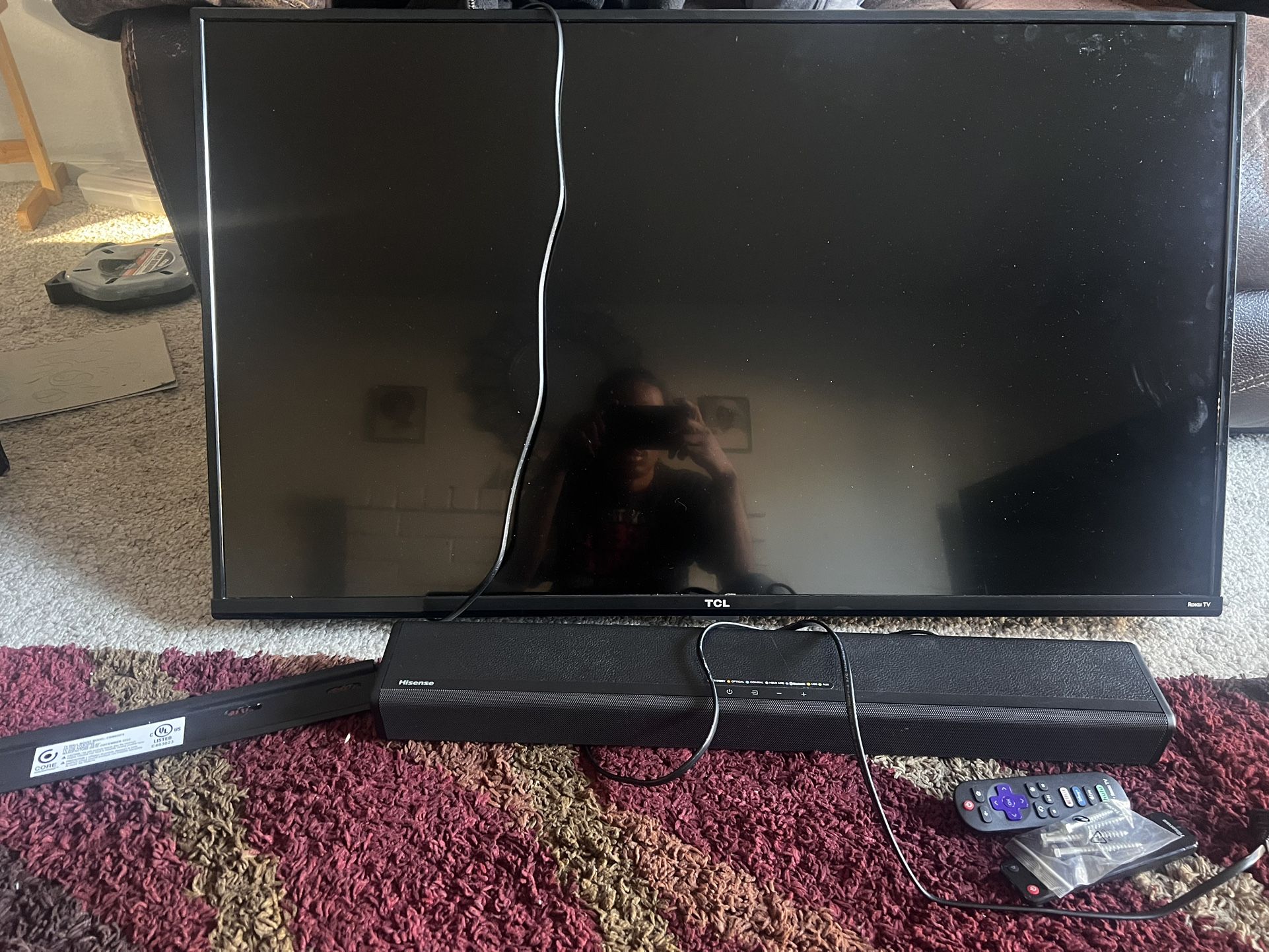 TCL TV with built in Roku Comes with soundbar and wall mount Legs are missing so it must be mounted