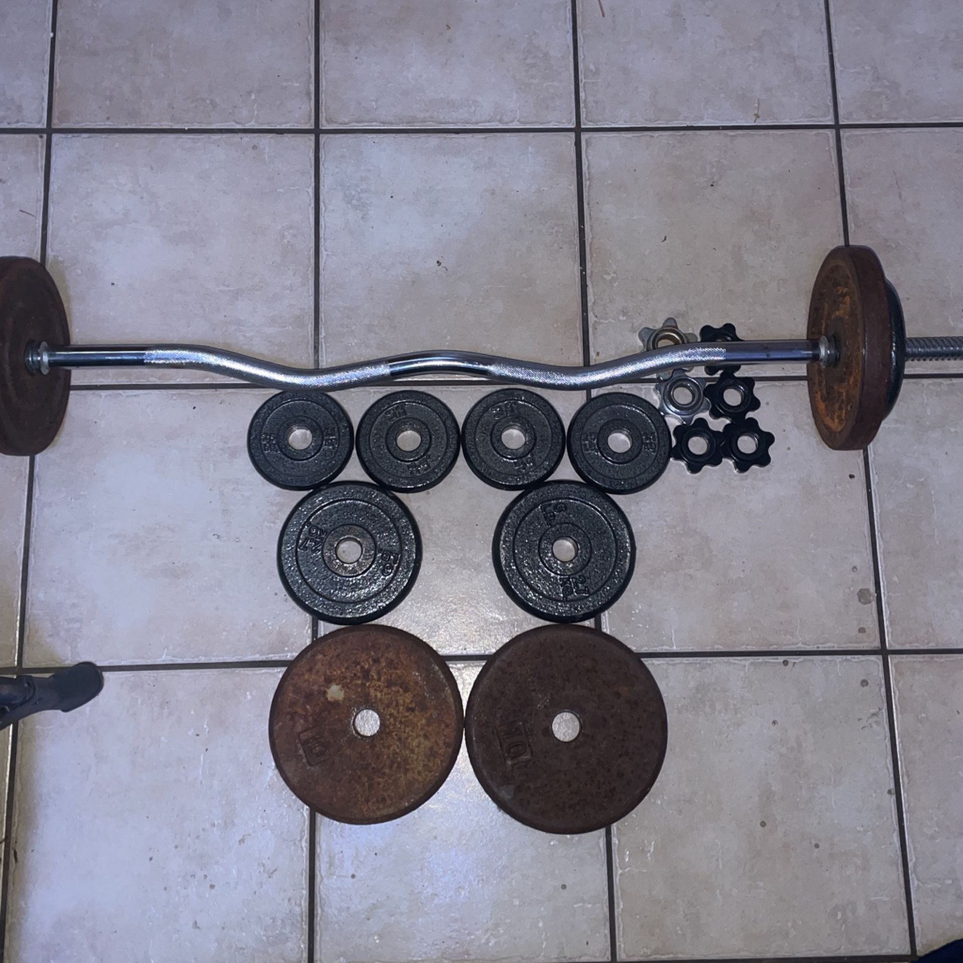 4 10lbs, 4 6lbs, 4 2.5 lbs, EZ Curl Bar. Willing to Negotiate