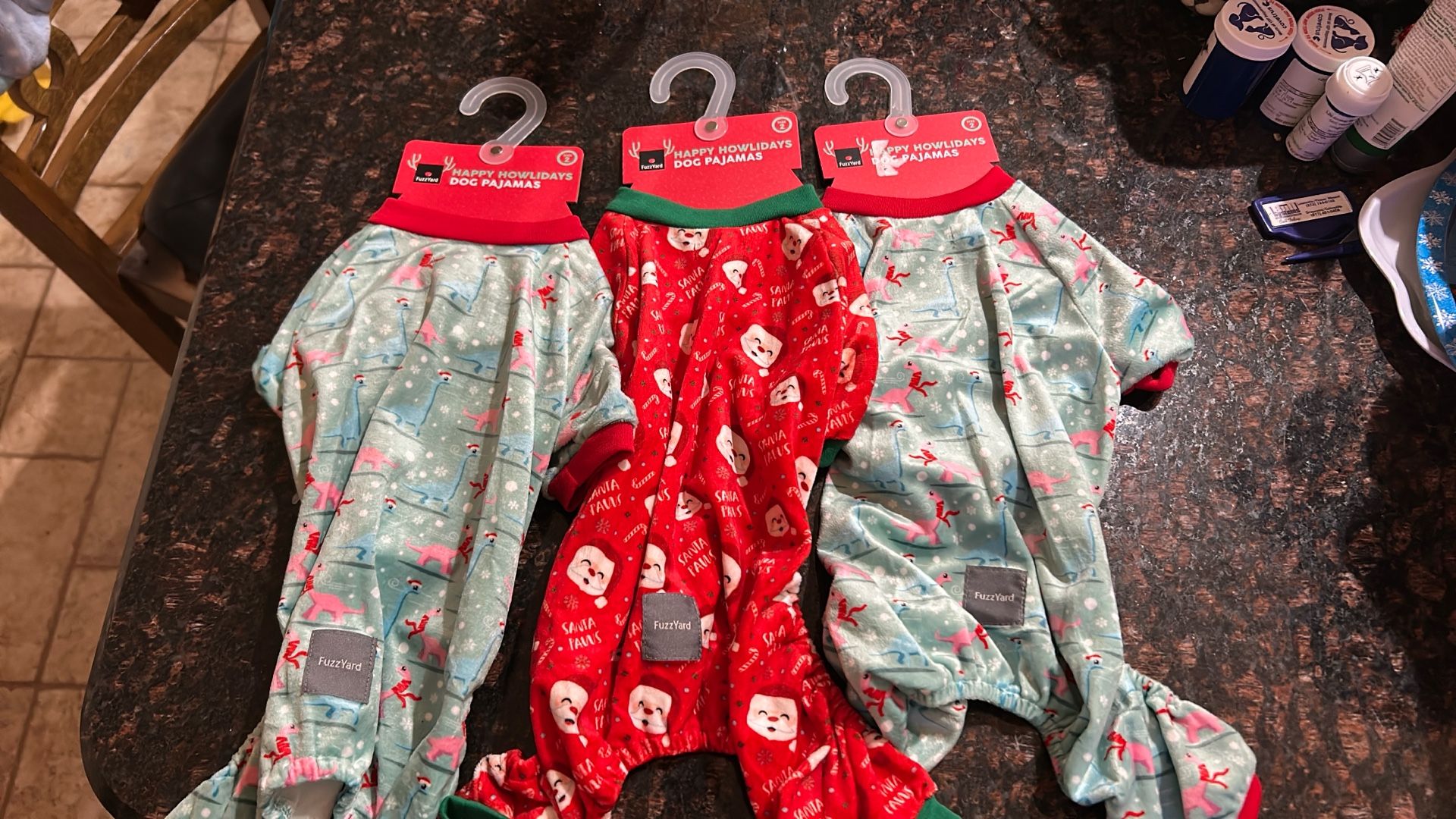 Set Of 3 Small Dog Christmas Pajamas